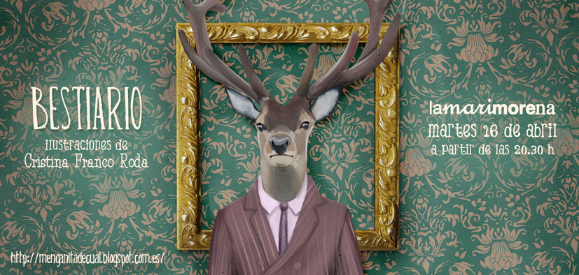 Con motivo del segundo aniversario de Lamarimorena Restaurant (Avenida del Chorrico, 110, 30500 Molina de Segura),  el próximo martes 16 de abril se inaugura la exposición de ilustraciones realizadas por Cristina Franco Roda, titulada BESTIARIO y protagonizada por sus seres antropomórficos (híbridos mitad humanos, mitad animales). Para todos los asistentes el día de la inauguración, podrán degustar además del cóctel Bellini que el restaurante servirá para la celebración
