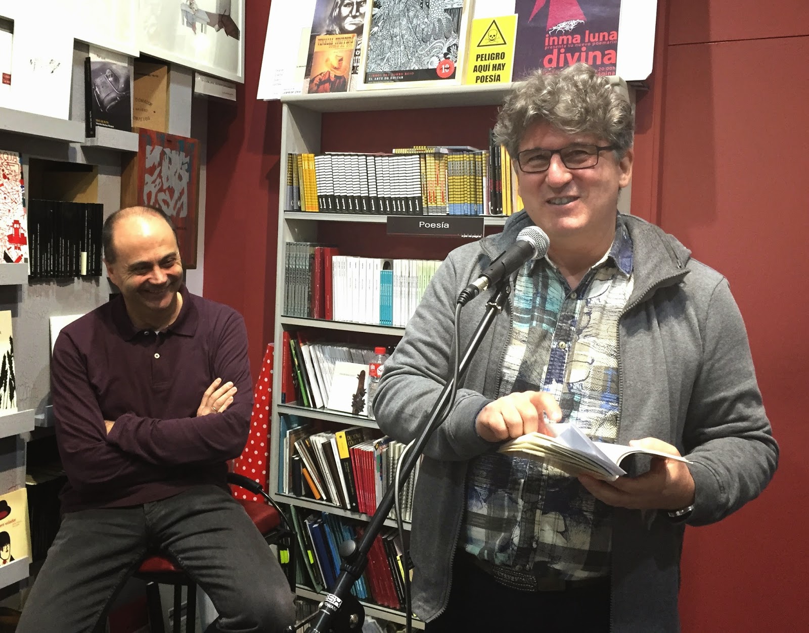 Bernardo Santos y Fermín Herrero, con quien ya hemos contado en anteriores ocasiones, presentaron el jueves sus respectivos Global y roto y Furtivo de los días. Ahí les tenéis tan guapos. Nos leyeron algunos de sus poemas. Aún quedan ejemplares de estas sus últimas obras, editadas por Amargord Ediciones, en nuestra librería.
