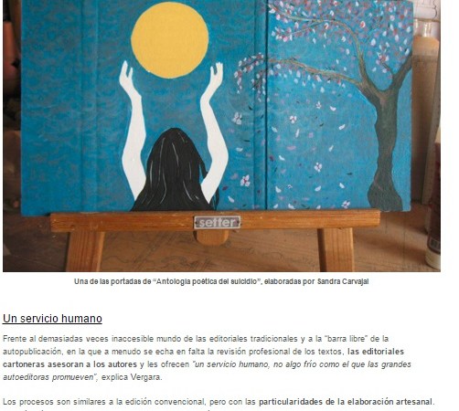 Lo de que “la crisis agudiza el ingenio” se ha convertido en una especie de mantra voceado de forma interesada por determinados sectores en estos tiempos de escasez, quizá buscando apelar a esa parte de responsabilidad personal que eximiría a la clase política del naufragio económico del ciudadano de a pie. Así que no, no repetiremos una vez más la frase hecha, preferimos decir que, afortunadamente, incluso en la adversidad, el ser humano es capaz de alumbrarnos con su prodigio y devolvernos la fe en nuestra especie. Las editoriales cartoneras son hijas de la crisis sí, pero, ante todo, son un proyecto social que aúna literatura, artesanía, solidaridad y reciclaje.»