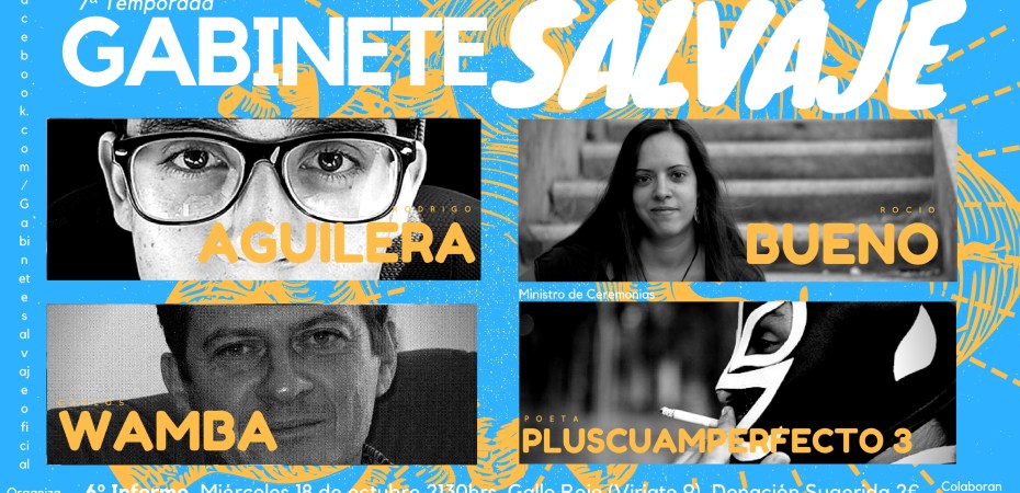 ¿Qué es El Gabinete Salvaje? Es un evento semanal de duración de poco más de una hora, en él la poesía es el eje de un ambicioso proyecto producido en directo donde confluyen las artes, poetas, creadores, noticias de actualidad y entrevistas en directo. El Ministro de Ceremonias será el Poeta Pluscuamperfecto 3, quién de manera unipersonal interactuará con los invitados y su poesía mediante vídeos, música y más. La intención es crear un espacio un espacio de encuentro poético de referencia en la ciudad, en el que confluya un público diverso, interesado por la literatura y las artes y los eventos rabiosamente más contemporáneos.