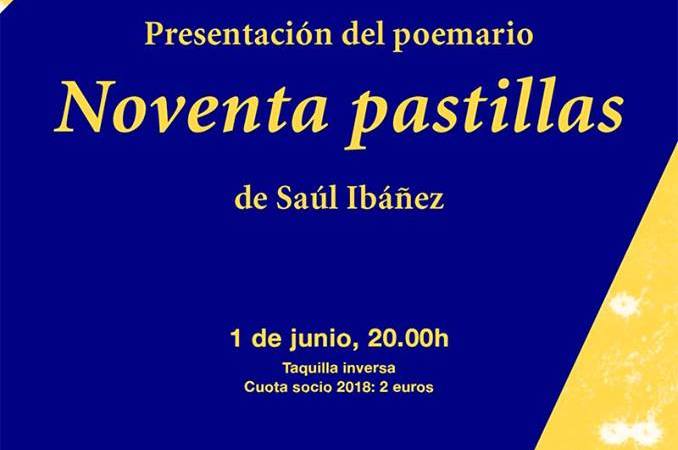 Presentación de Noventa pastillas (Editorial Ultramarina, Cartonera y Digital), tercer poemario de Saúl Ibáñez, escritor sevillano y residente en Barcelona. Acompañará al autor la escritora y editora Hebe Prado.