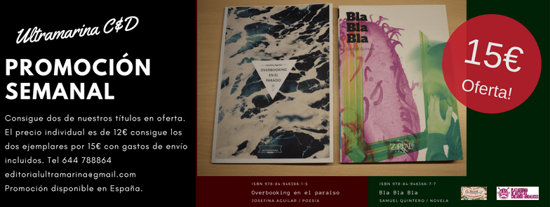 2. Te ofrecemos la novela Bla bla bla, de Samuel Quintero y el increíble poemario Overbooking en el paraíso – Josefina Aguilar Recuenco.