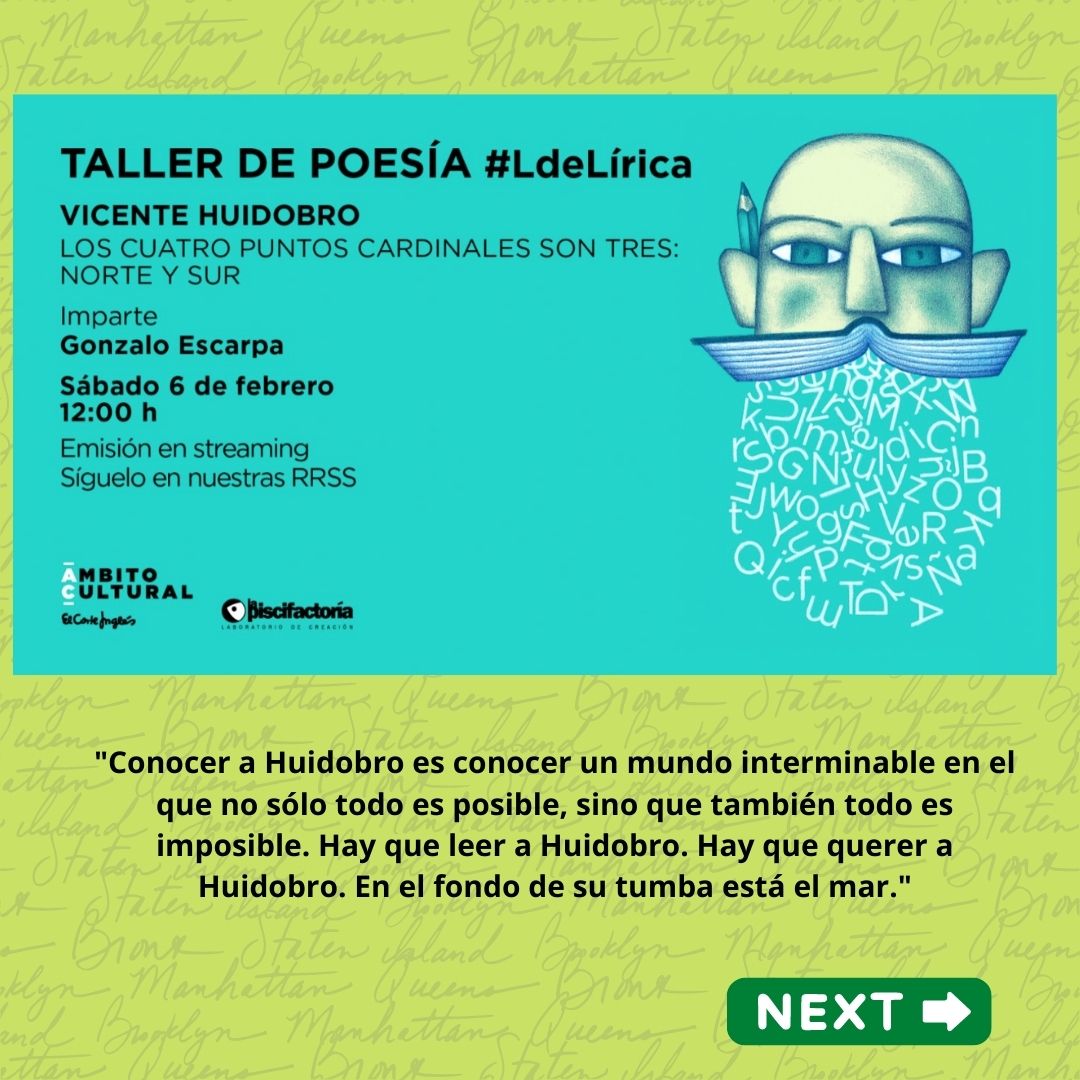 Para acceder el articulo: https://ambitocultural.es/poesia-vicente-huidobro-taller-escarpa-89841/