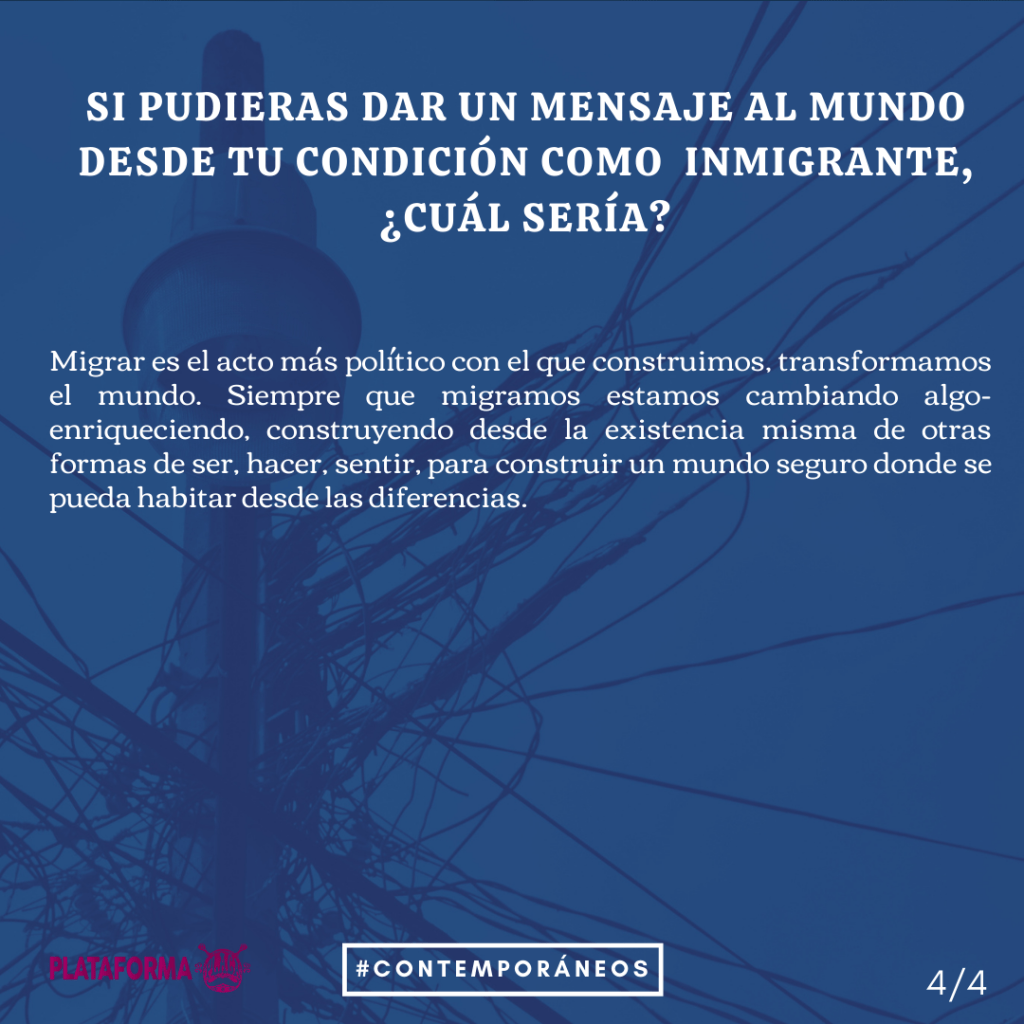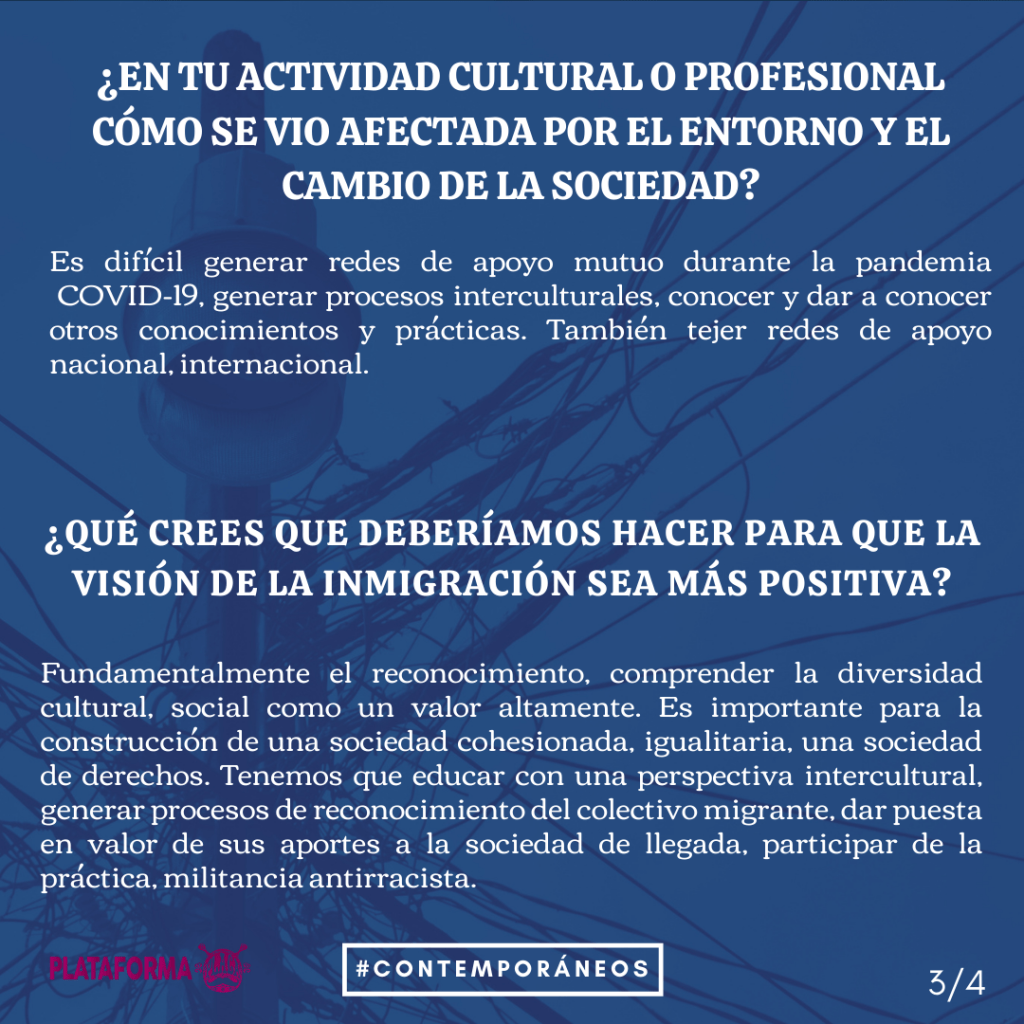Muchas gracias a Zareli por participar en Contemporáneos. Con todas las entrevistas de nuestro proyecto, podemos hacer más visible las contribuciones de los inmigrantes en sus ciudades e países donde viven.