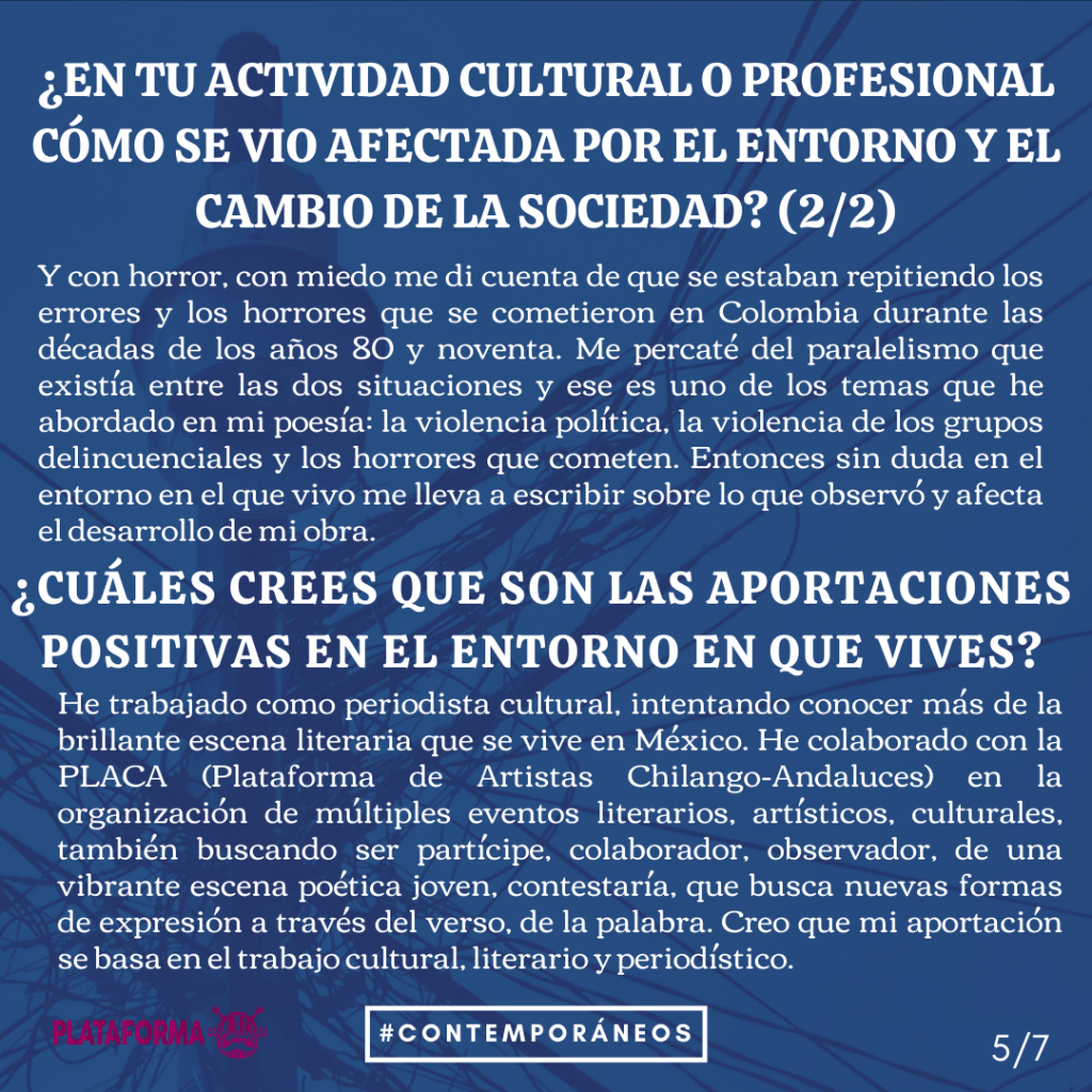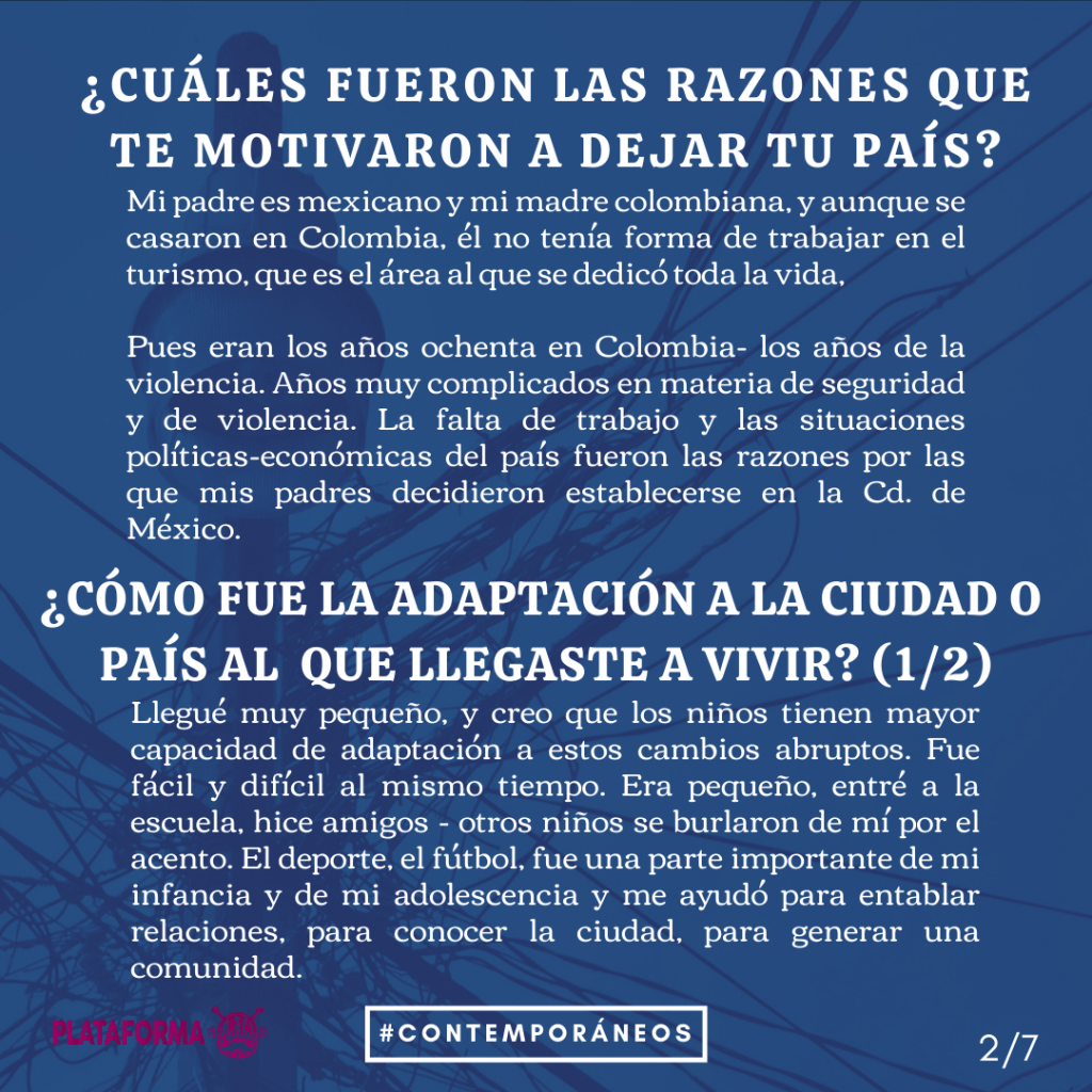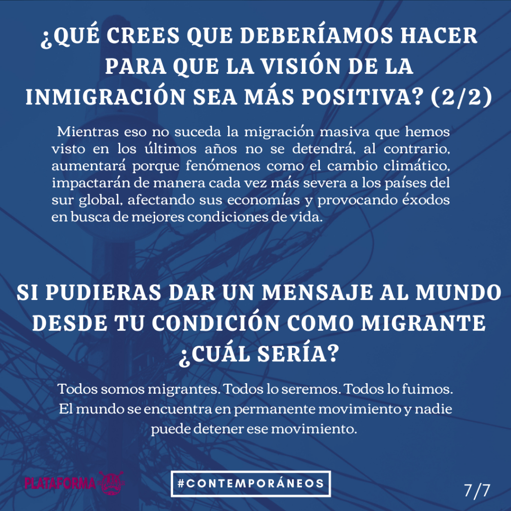 Muchas gracias a Javier por participar en Contemporáneos. Con todas las entrevistas de nuestro proyecto, podemos hacer más visible las contribuciones de los inmigrantes en sus ciudades e países donde viven.