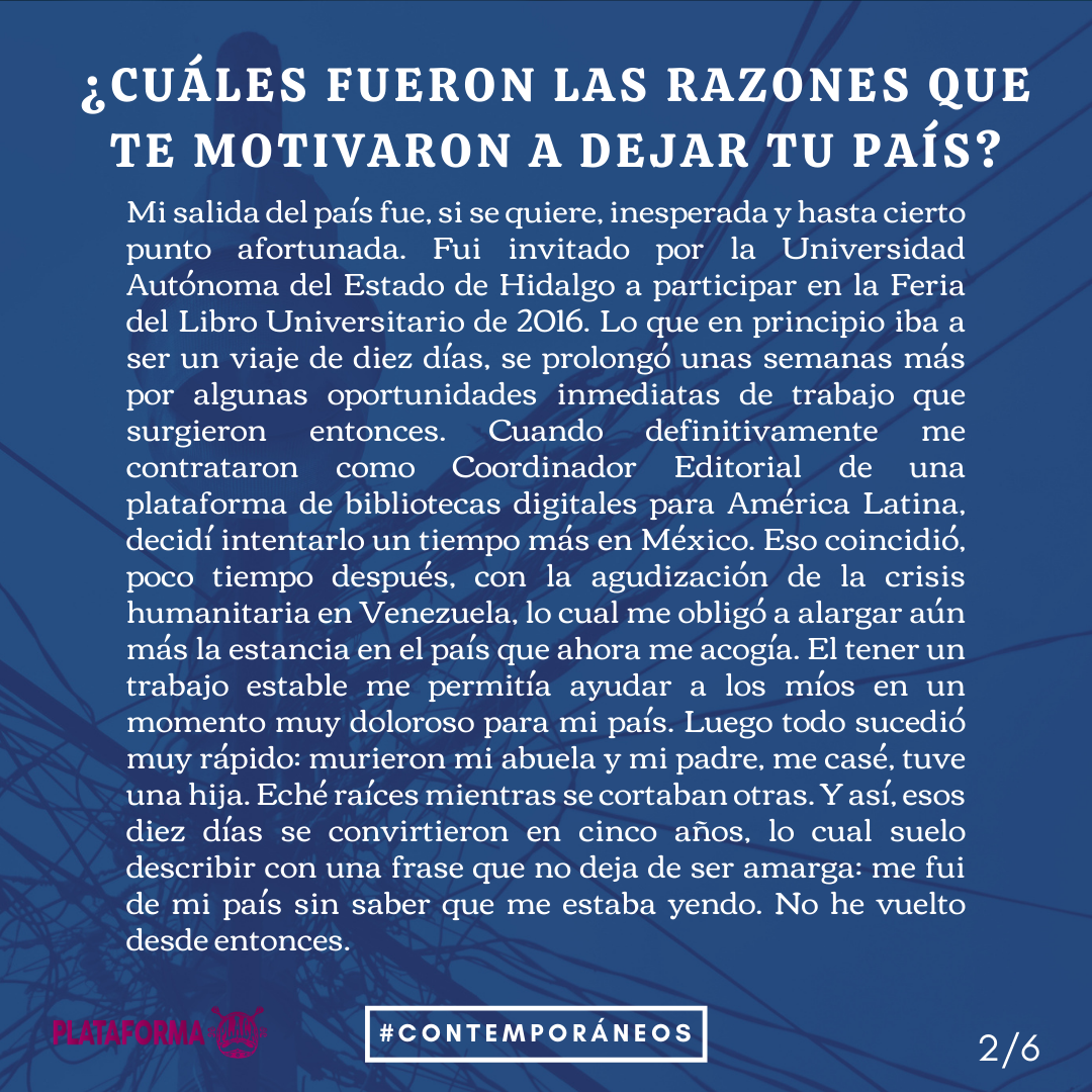 Zakarías Zafra es de Venezuela, pero actualmente vive en México. Le preguntamos sobre su experiencia como inmigrante en su nuevo país. Puedes conocer más sobre él y su historia aquí.
