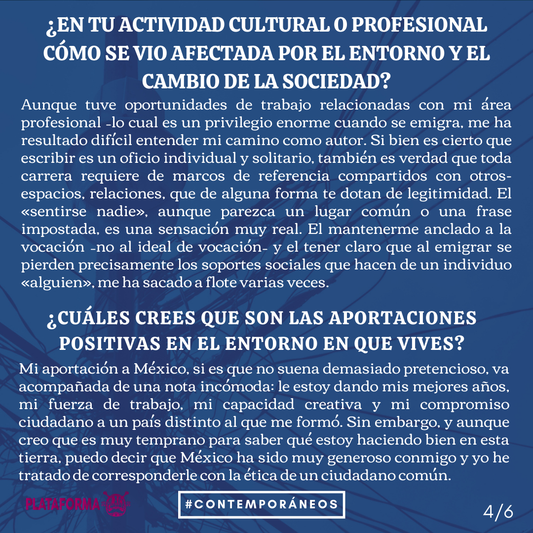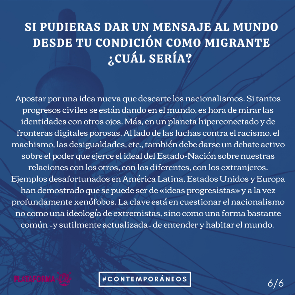 Muchas gracias a Zakarías por participar en Contemporáneos. Con todas las entrevistas de nuestro proyecto, podemos hacer más visible las contribuciones de los inmigrantes en sus ciudades e países donde viven.