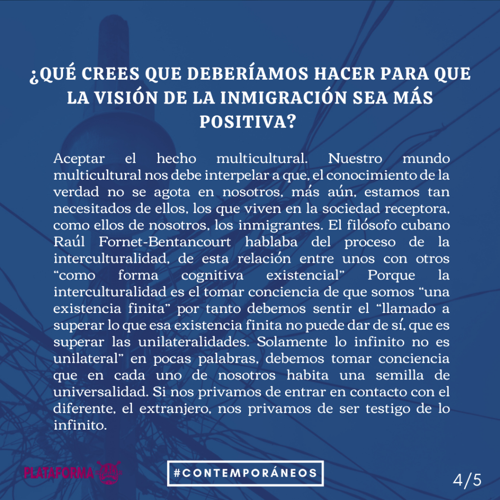 Muchas gracias a Felipe por participar en Contemporáneos. Con todas las entrevistas de nuestro proyecto, podemos hacer más visible las contribuciones de los inmigrantes en sus ciudades e países donde viven.