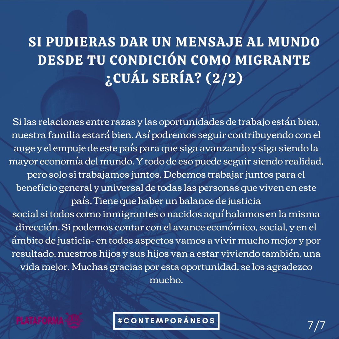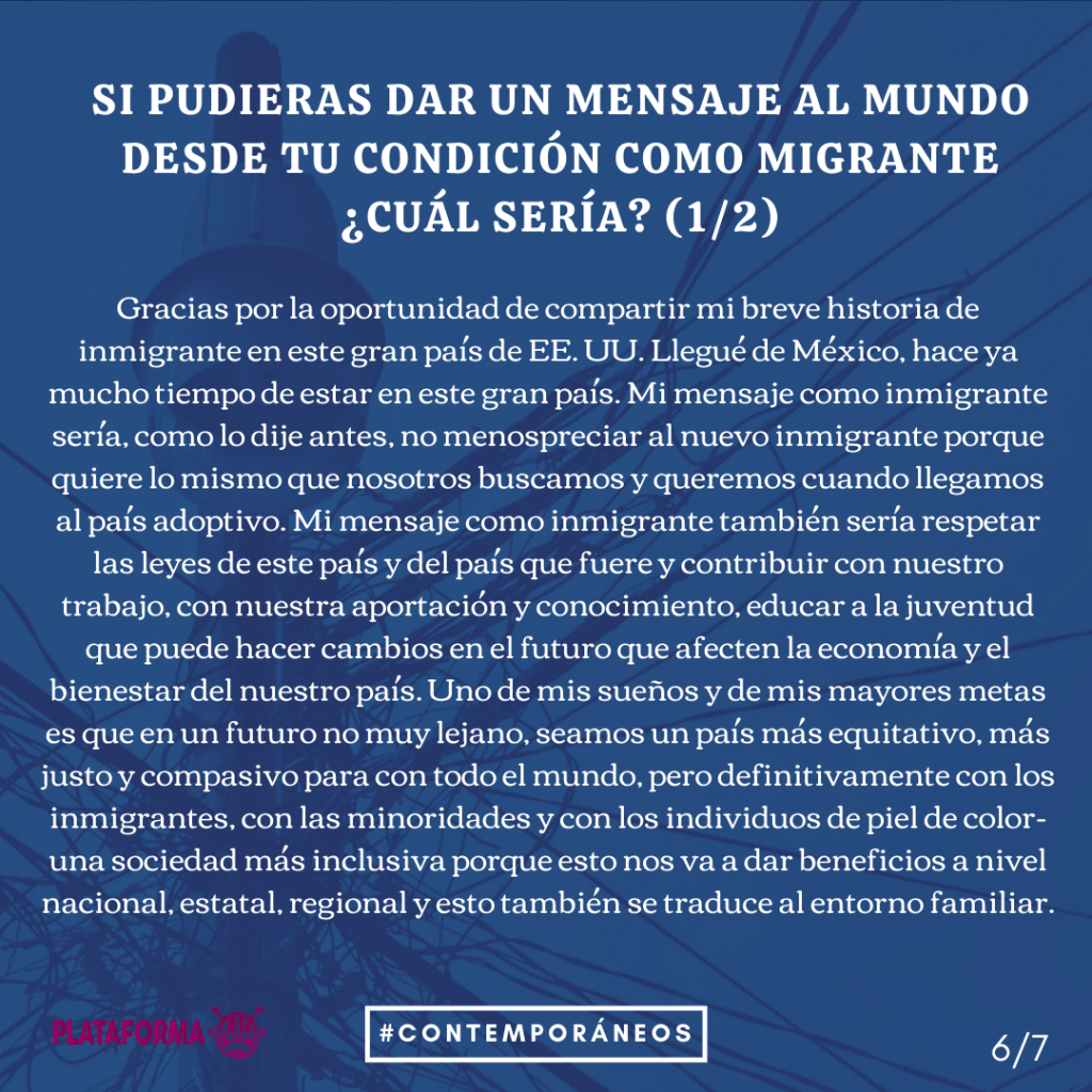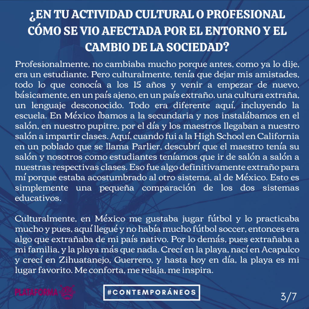 Muchas gracias a Alejandro por participar en Contemporáneos. Con todas las entrevistas de nuestro proyecto, podemos hacer más visible las contribuciones de los inmigrantes en sus ciudades e países donde viven.