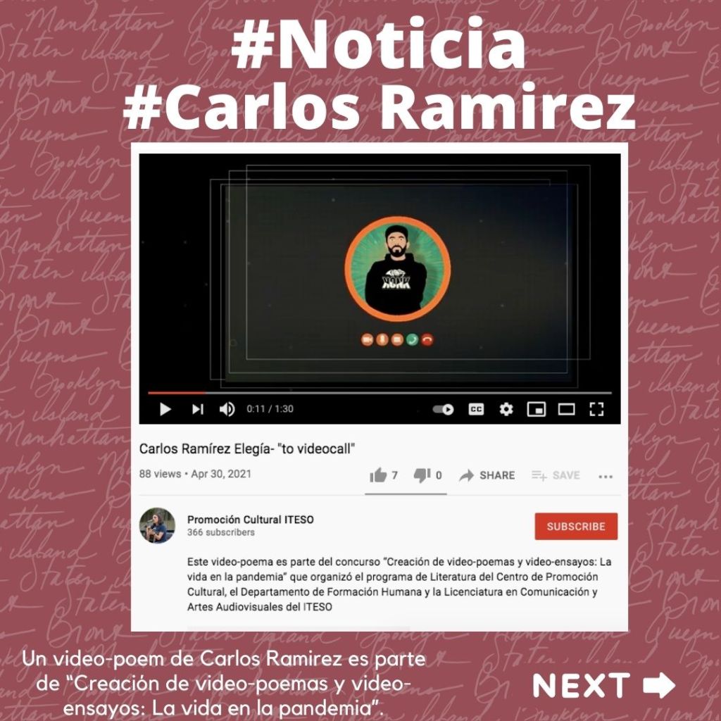 Les invitamos a visitar el Youtube de Promoción Cultural ITESO donde aparece publicado un video-poema de Carlos Ramírez.