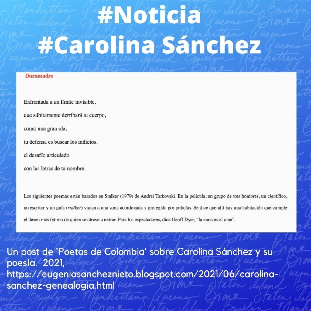 Les invitamos a leer el blog ‘Poetas colombianos’, donde encontrarán un posto sobre Carolina Sánchez y su poesía.