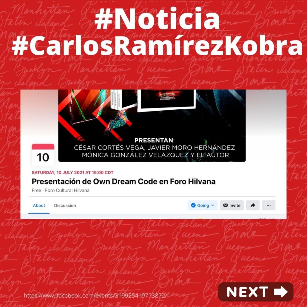 Acompáñennos para una presentación del libro #OwnDreamCode de Carlos Ramírez Kobra, publicado por la Editorial Ultramarina Cartonera & Digital