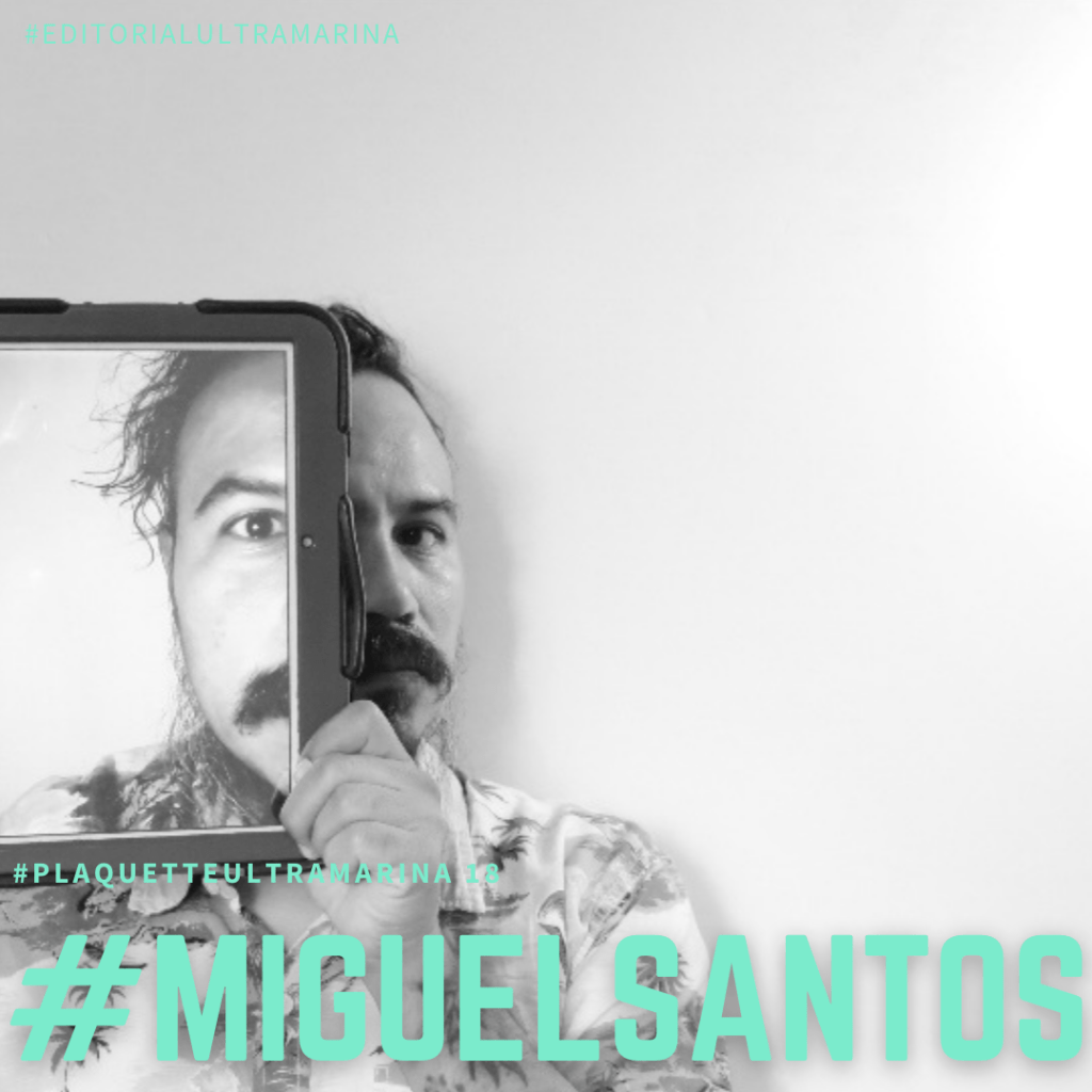 Miguel Santos (Distrito Federal, Méx. 1978): Escritor. Ha ganado algunos concursos literarios, como el Criticón 1 (Teatro UNAM, 2011) y el Torneo de Poesía Adversario en el Cuadrilátero 2012. Entre sus libros de poesía destacan: Autopsia del instante (2015) y Los mapas se hicieron para caminarlos (2017). En 2020 resultó beneficiario del Programa Nacional “Contigo en la distancia” con el proyecto «Interior )es( Poemas en caza”. Desde 2012 se presenta con su trabajo de Poesía en Voz Alta. Actualmente ejerce el oficio de librero e imparte talleres de creación literaria.