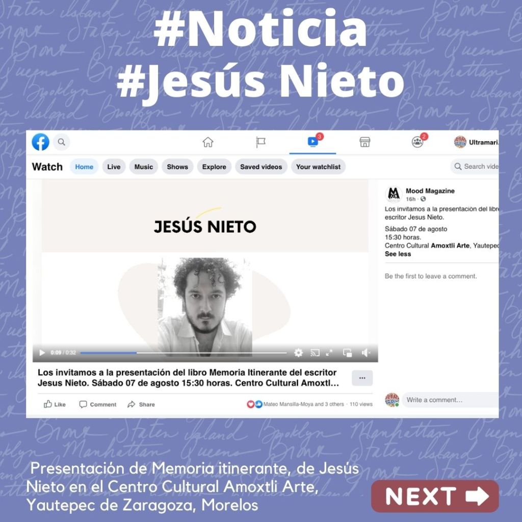 Les invitamos a la presentación del libro ‘Memoria Itinerante’ del escritor Jesús Nieto.’