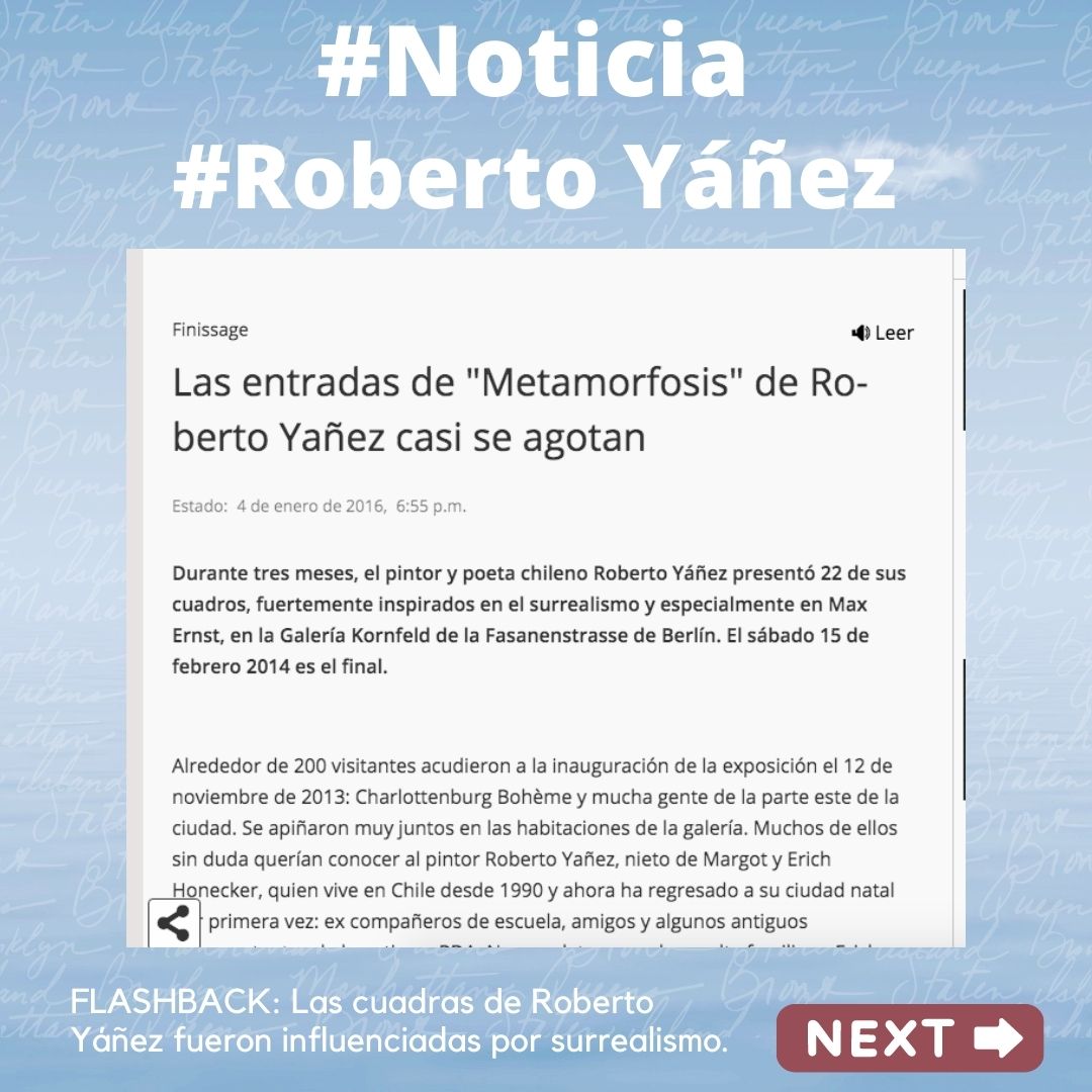 Les invitamos a ver una entrada pasada sobre el arte de Roberto Yáñez en su exposición “Metamorphosen”. El presentó 22 de sus cuadros surrealistas. Puedes comprar su libro ‘Poemas Trizados’ con Plataforma PLACA!!