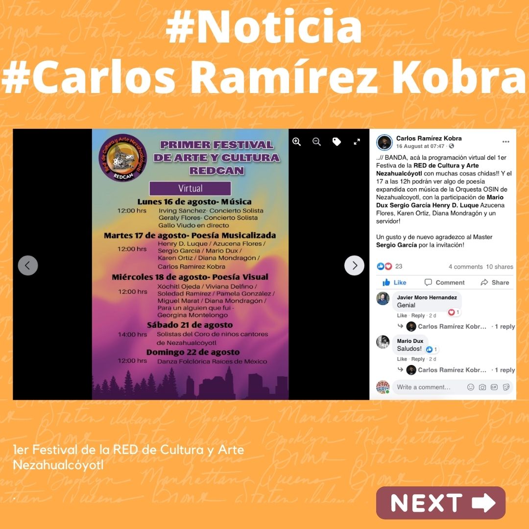 Les invitamos a ver Carlos Ramírez Kobra en el 1er Festival de la RED de Cultura y Arte Nezahualcóyotl! No lo olvides, el libro ‘Own Dream Code’ está disponible al sitio web de Plataforma PLACA. Dale aquí para comprar!!
