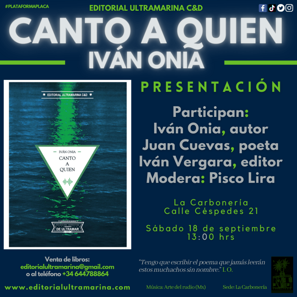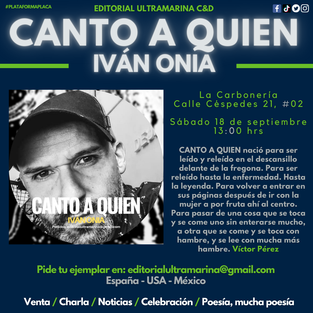 #PlataformaPLACA #ChilangoAndaluz #EditorialUltramarina #PoesíaSevilla #IvánOnia #Sevilla #PoesíaAndaluza #RíoHudson #NY #WhaltWhitman #Cantoaquien #PoesíaEspañola