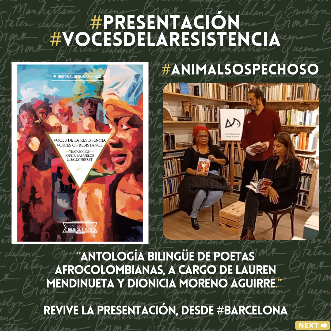 Queremos invitarles a revivir la preciosa presentación de Voces de la resistencia: siete poetas afrocolombianas, desde @animal sospechoso, librería de #Barcelona dedicada a ladistribución de libros de poesía.