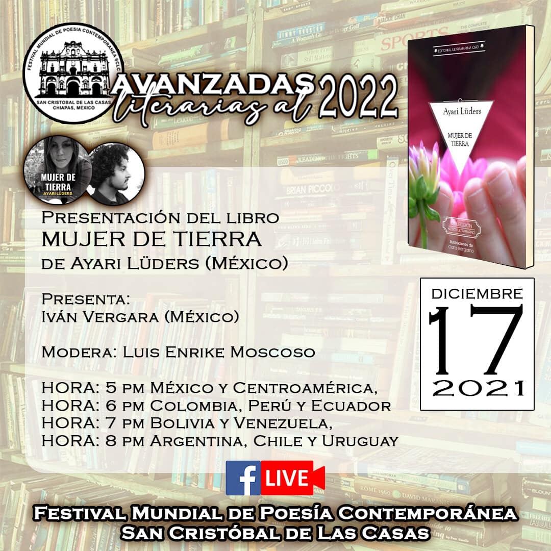 .Presentación del libro MUJER DE TIERRA de la poeta Ayari Lüders, con la participación del poeta Ivan Vergara en la AVANZADA LITERARIA HACIA EL 2022