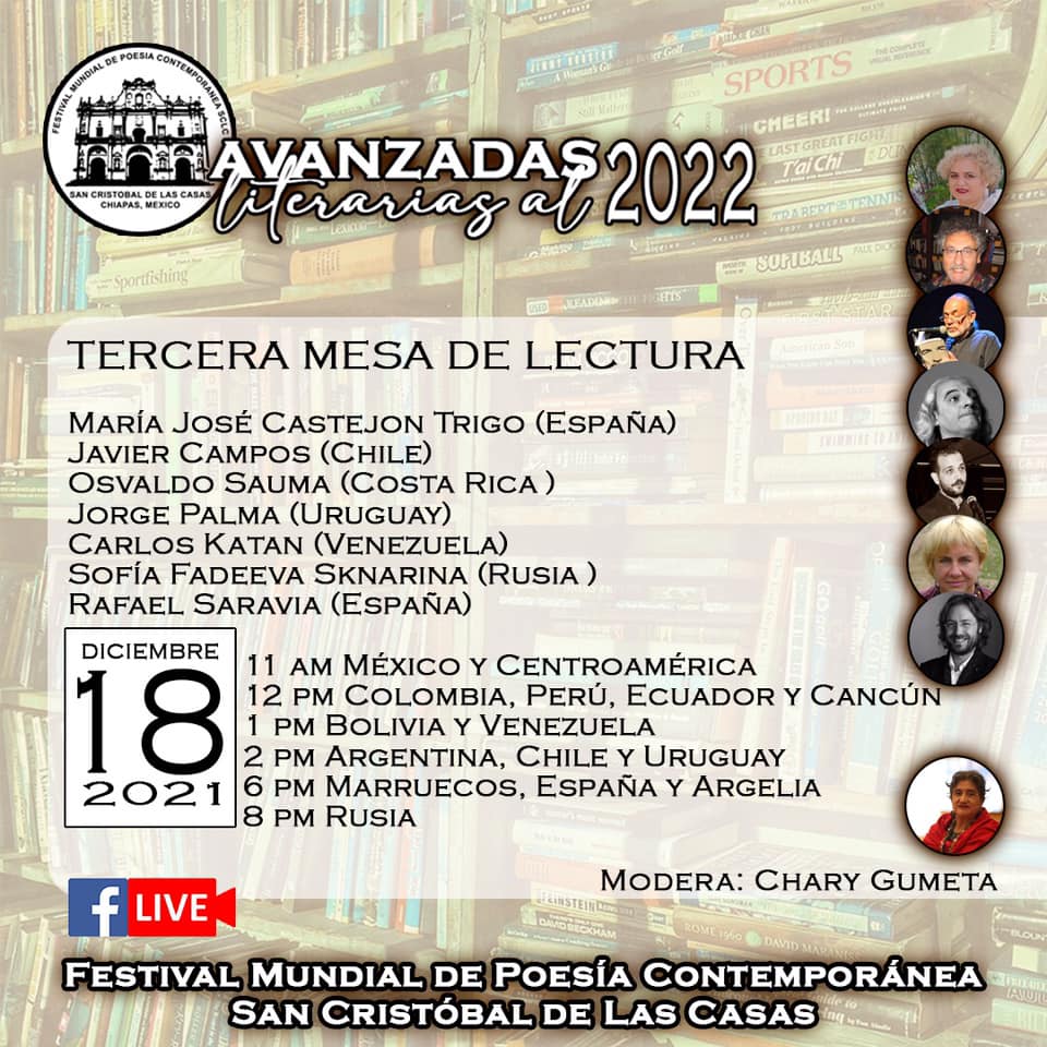 Carlos Carlos Katan será parte de la TERCERA MESA DE LECTURA en esta AVANZADA LITERARIA HACIA EL 2022.