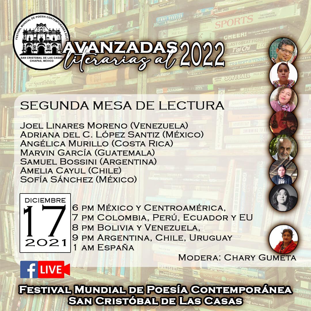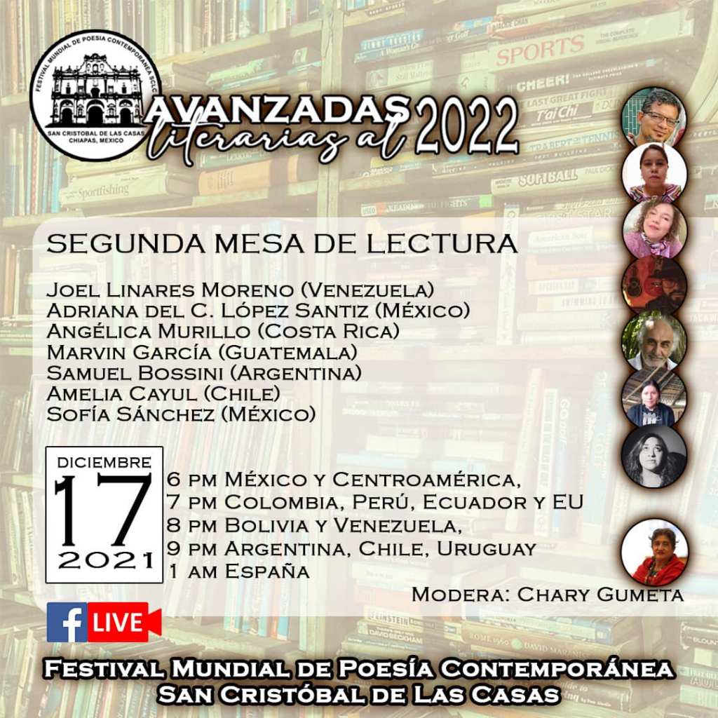 URGENTE: anexamos los datos confirmados de las participaciones en el Festival mundial de poesía de San Cristóbal de las Casas.