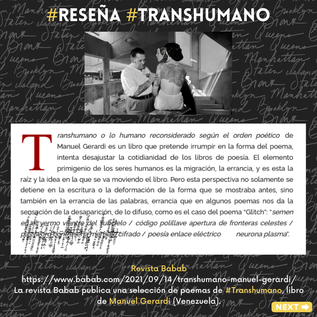 La revista Babab publica una selección de poemas de #Transhumano, libro de Manuel Gerardi (Venezuela).