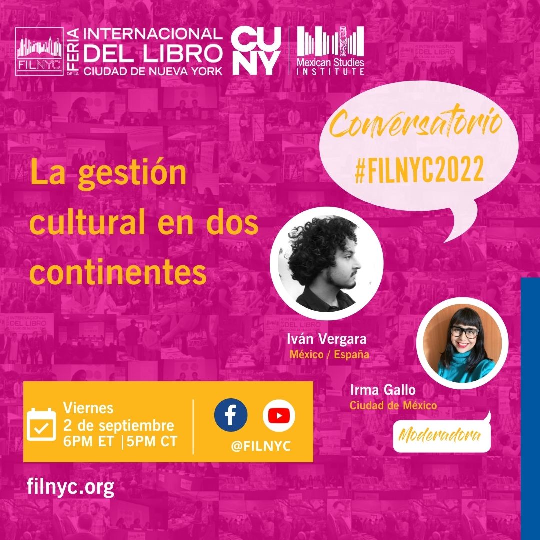 «Este viernes 2 de septiembre no te pierdas el sexto Conversatorio Virtual #FILNYC2022. Tendremos como invitado a Iván Vergara, fundador de Plataforma PLACA y editor en Editorial Ultramarina Cartonera & Digital. Te esperamos en nuestro canal de YouTube. Horarios 👇»