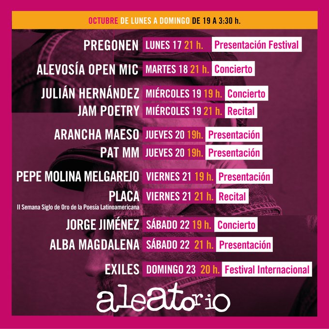 Les compartimos este mensaje porque sabemos de su cercanía con la poesía, estos son dos actos en los que escucharemos poesía de muy alto calado. Acérquense, apoyen y sean parte de este momento histórico en Madrid.