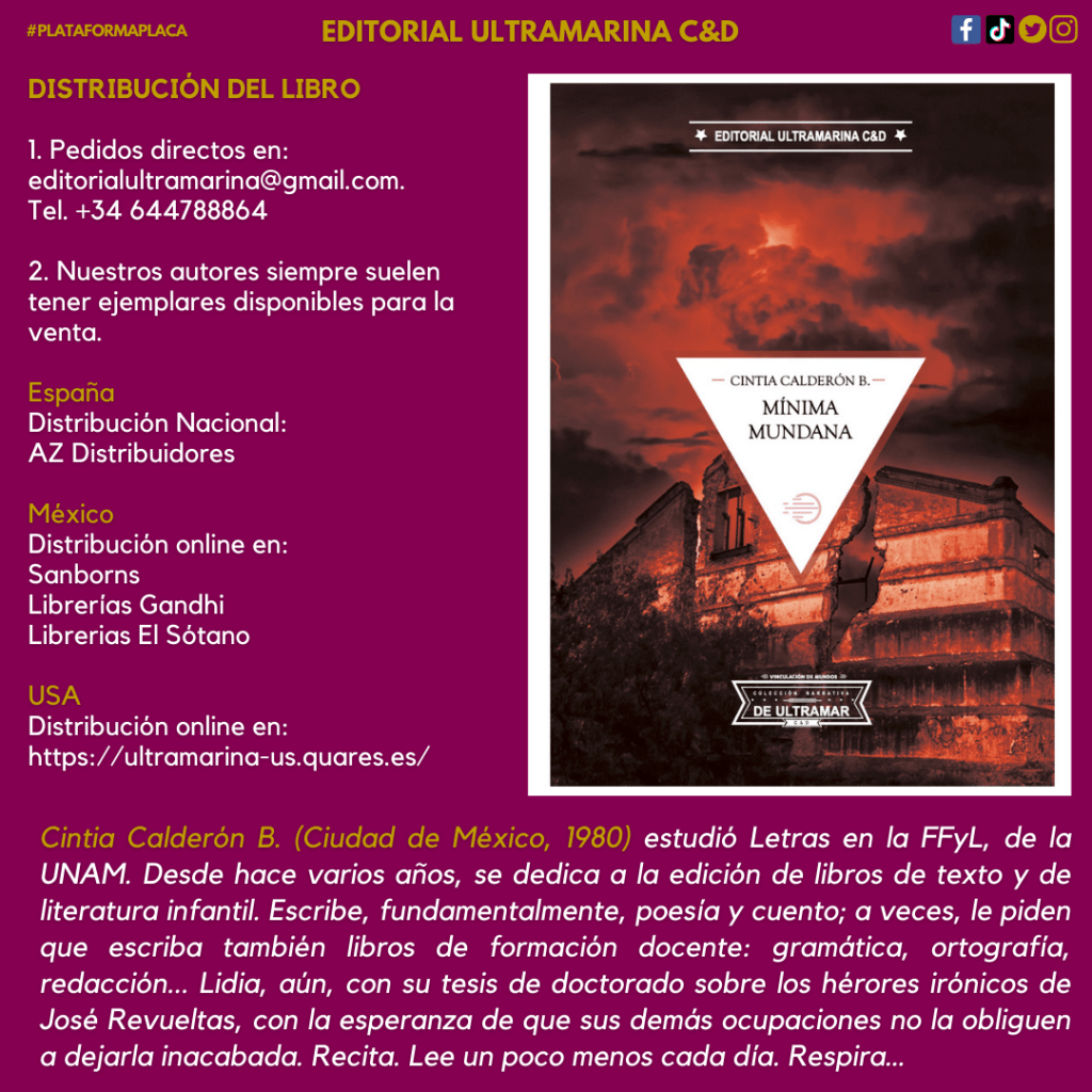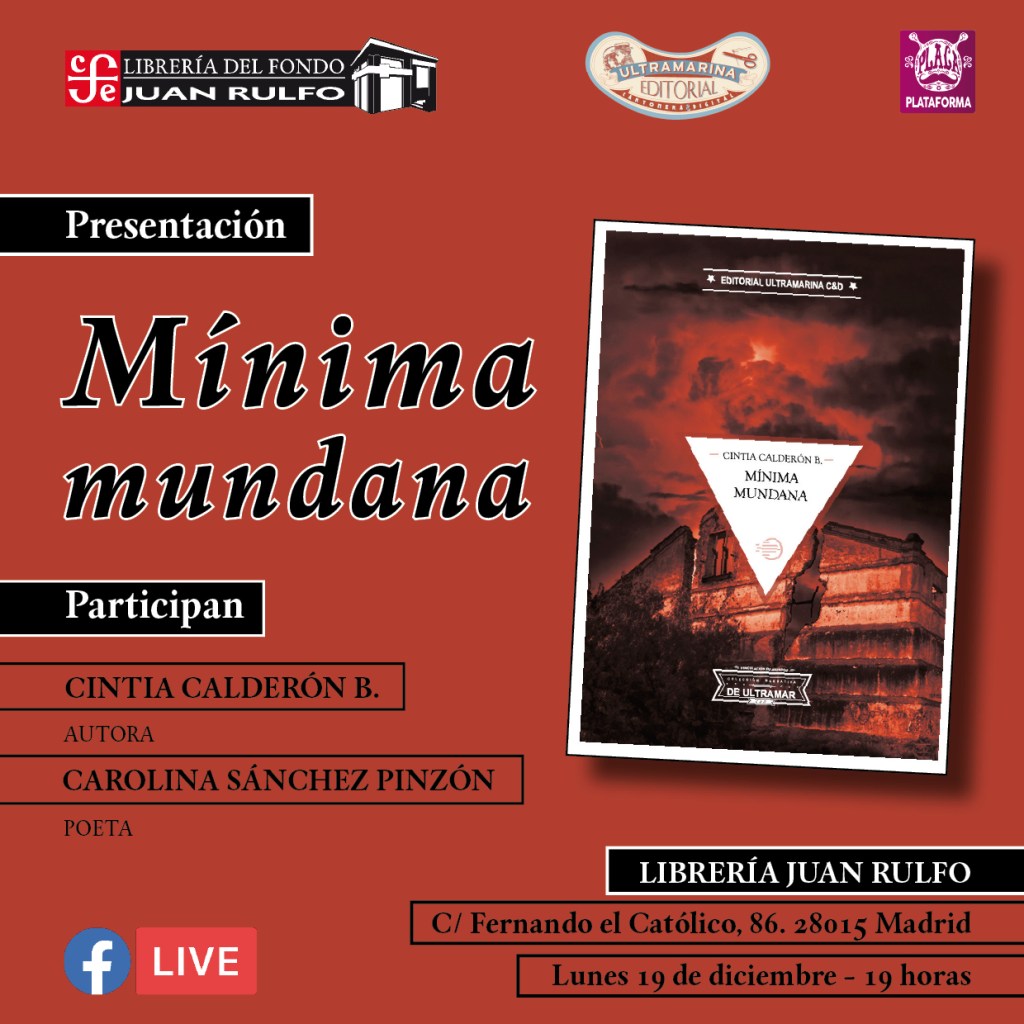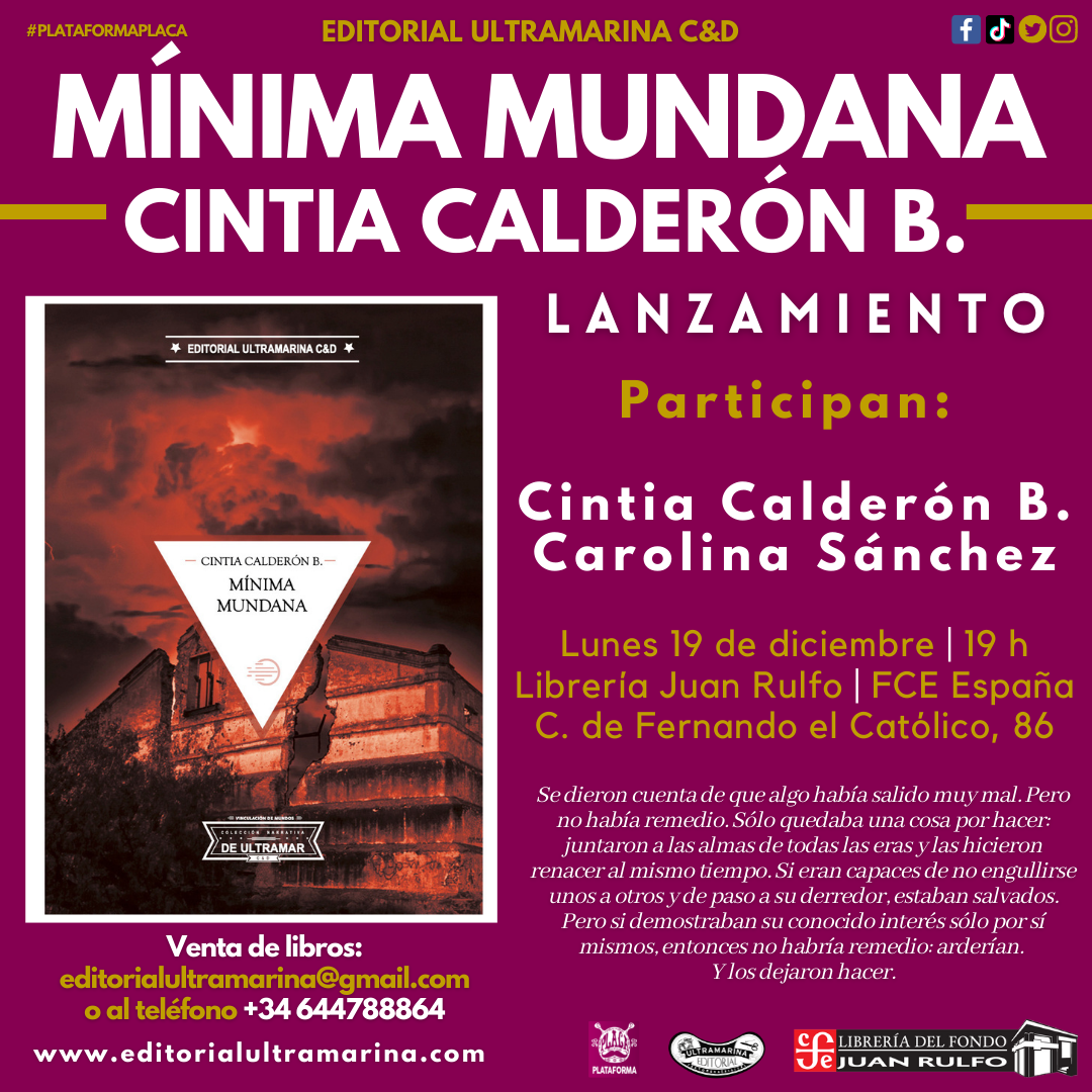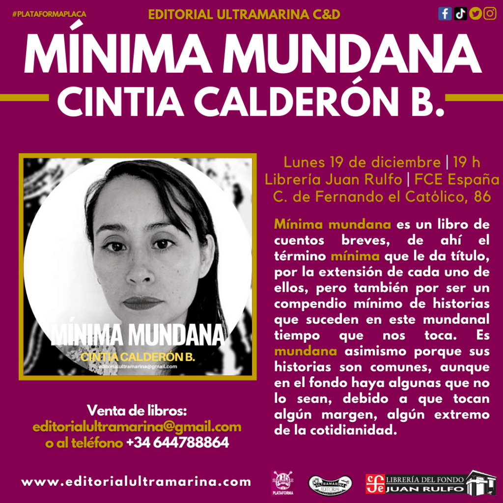 Queremos invitarles al lanzamiento internacional de Mínima mundana, primer libro de relatos de Cintia Calderón B. (CDMX, 1980). Es un momento muy importante para nuestro proyecto, de hecho hay una razón personalísima que desvelaremos durante la presentación.