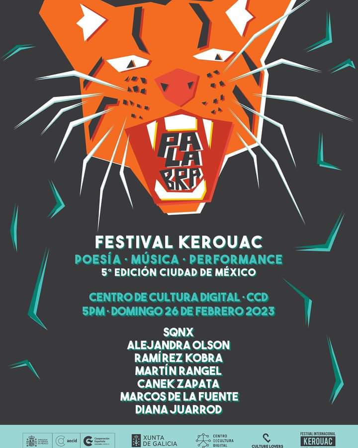 El Festival Kerouac Ciudad de México reúne, en su quinta edición en el país americano, algunas de las voces más excitantes y transgresores de la poesía contemporánea, ofreciendo nuevos espacios y soportes para la experimentación; proponiendo nuevos caminos para la palabra poética y su relación con otras artes; borrando las fronteras entre poesía, música y performance, que multiplican su alcance en esta exposición vibrante e inspiradora de la poesía en nuestra lengua.