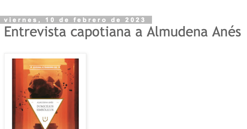 Recomendamos muchísimo ir al enlace para hacer la lectura completa, aquí: https://almaenlaspalabras.blogspot.com/2023/02/entrevista-capotiana-almudena-anes.html?m=1