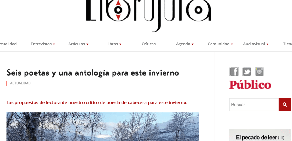Recomendamos muchísimo ir al enlace para hacer la lectura completa, aquí: https://librujula.publico.es/seis-poetas-y-una-antologia-para-este-invierno/