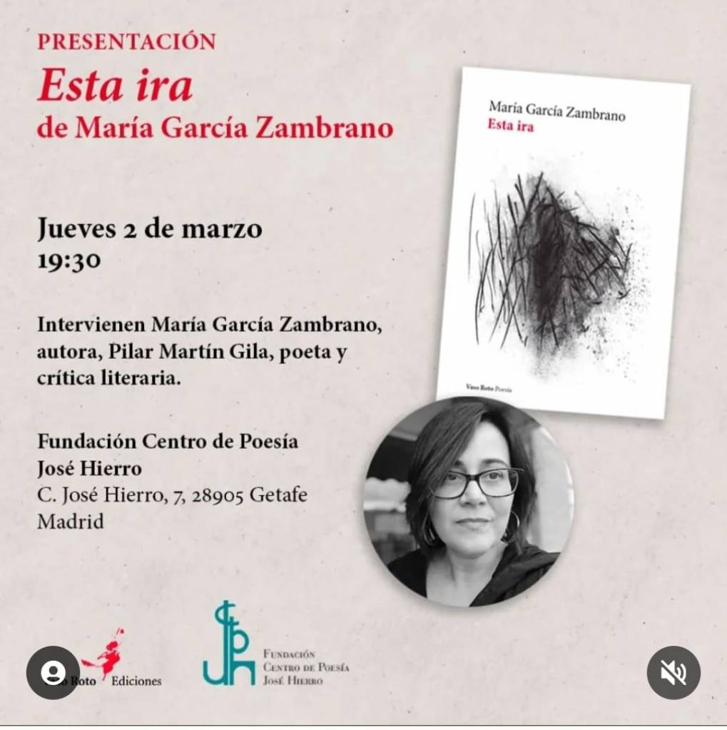 Acompáñennos hoy a la presentación de Esta ira de la autora María García Zambrano @mgzambrano1811 (instagram)