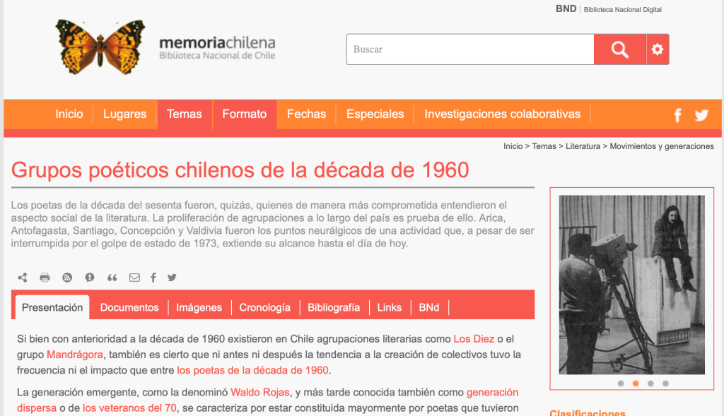 Los poetas de la década del sesenta fueron, quizás, quienes de manera más comprometida entendieron el aspecto social de la literatura. La proliferación de agrupaciones a lo largo del país es prueba de ello. Arica, Antofagasta, Santiago, Concepción y Valdivia fueron los puntos neurálgicos de una actividad que, a pesar de ser interrumpida por el golpe de estado de 1973, extiende su alcance hasta el día de hoy.