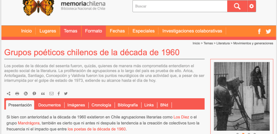 Los poetas de la década del sesenta fueron, quizás, quienes de manera más comprometida entendieron el aspecto social de la literatura. La proliferación de agrupaciones a lo largo del país es prueba de ello. Arica, Antofagasta, Santiago, Concepción y Valdivia fueron los puntos neurálgicos de una actividad que, a pesar de ser interrumpida por el golpe de estado de 1973, extiende su alcance hasta el día de hoy.
