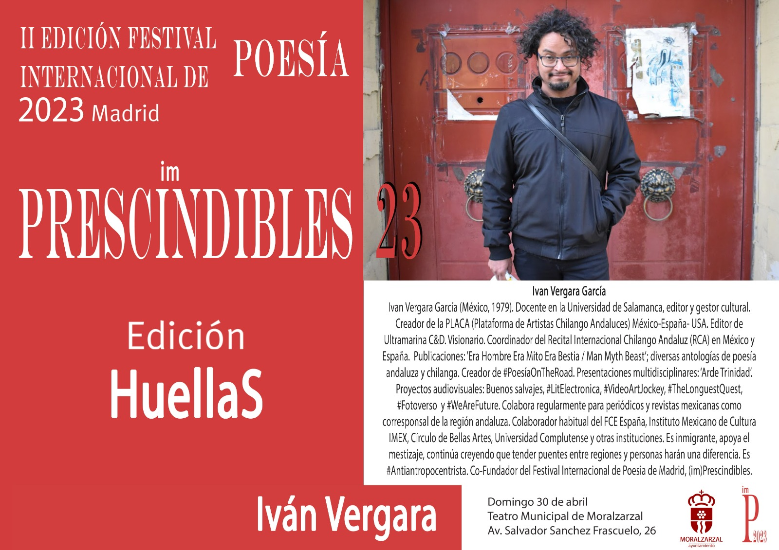 En el Domingo 30 de Abril hay un evento: II Edición Festival Internacional de Poesía 2023 Madrid al Teatro Municipal de Moralzarzal – Av. Salvador Sanchez Frascuelo, 26. Ivan Vergara García el creador de la PLACA, editor de Ultramarina C&D y coordinador del Recital Internacional Chilango en México y España tiene muchos publicaciones y proyectos que compartirá.