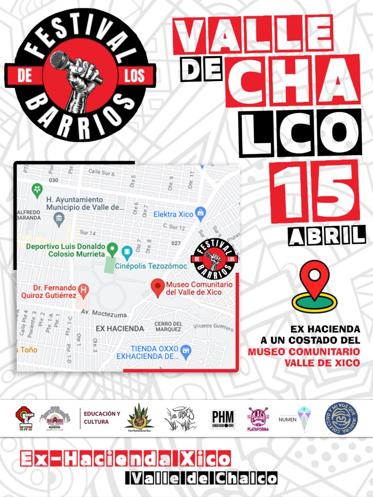 El Festival de los Barrios es una iniciativa de gestorxs, artistas y promotorxs culturales independientes de la periferia, en específico de municipios del Estado de México, de los municipios de Coacalco, Nezahualcoyotl, Ecatepec y Valle de Chalco.