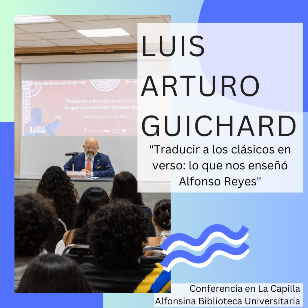 Dr. Luis Arturo Guichard es un filólogo, traductor y ensayista. Habló en una conferencia en La Capilla Alfonsina Biblioteca Universitaria sobre cómo «Traducir a los clásicos en verso: lo que nos enseño Alfonso Reyes».