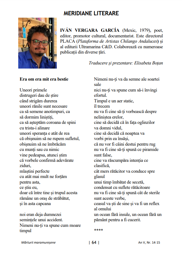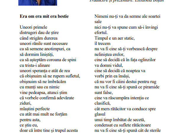 La traductora Elisabeta Botan ha incluido un pasaje de Era Hombre Era Mito Era Bestia en la nueva edición de Mărturii maramureşene. ¡Ahora puede leer la versión rumana por abajo!