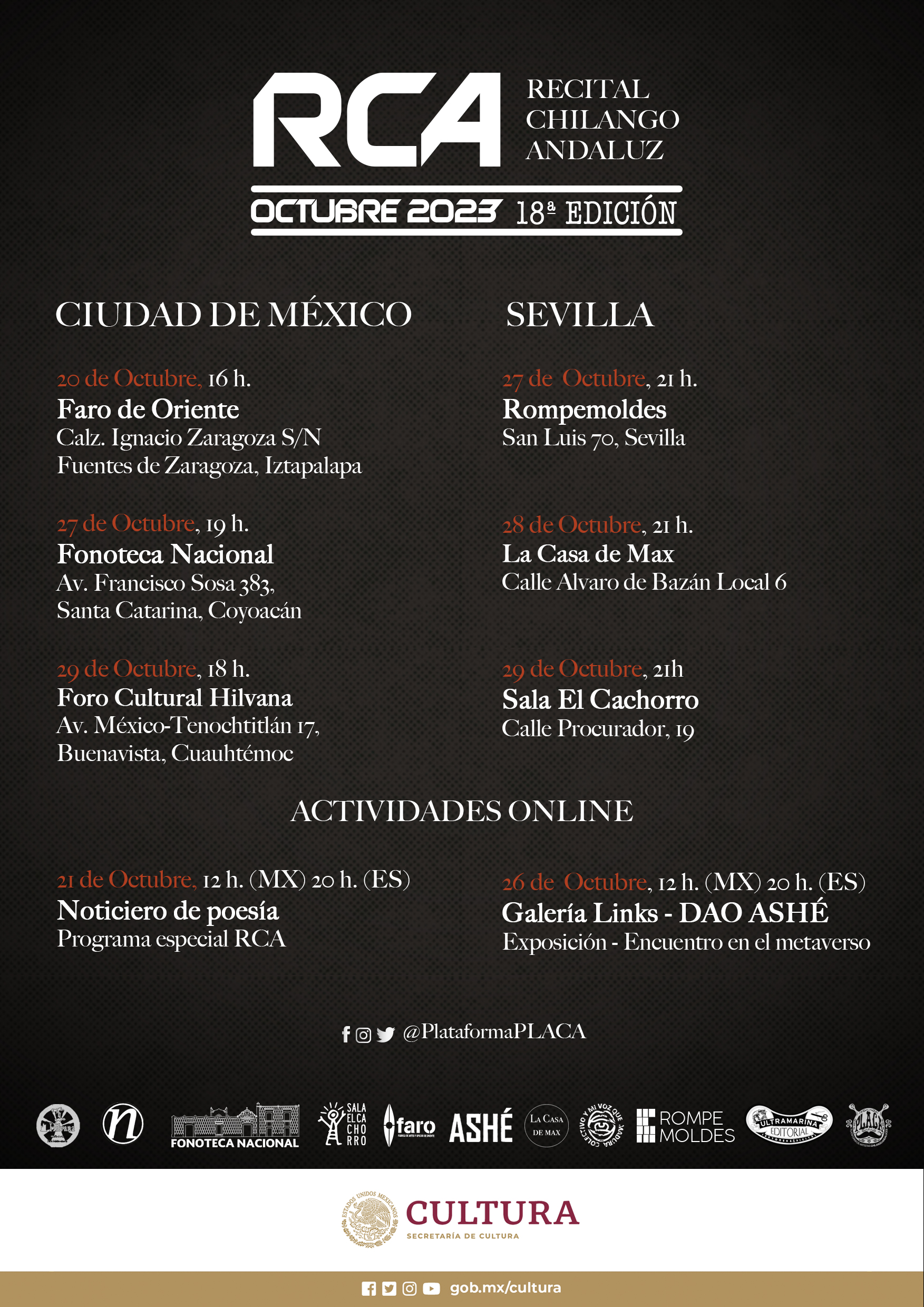 #RCA2023 – Programa completo México – España. 18 ediciones creando espacios poéticos.