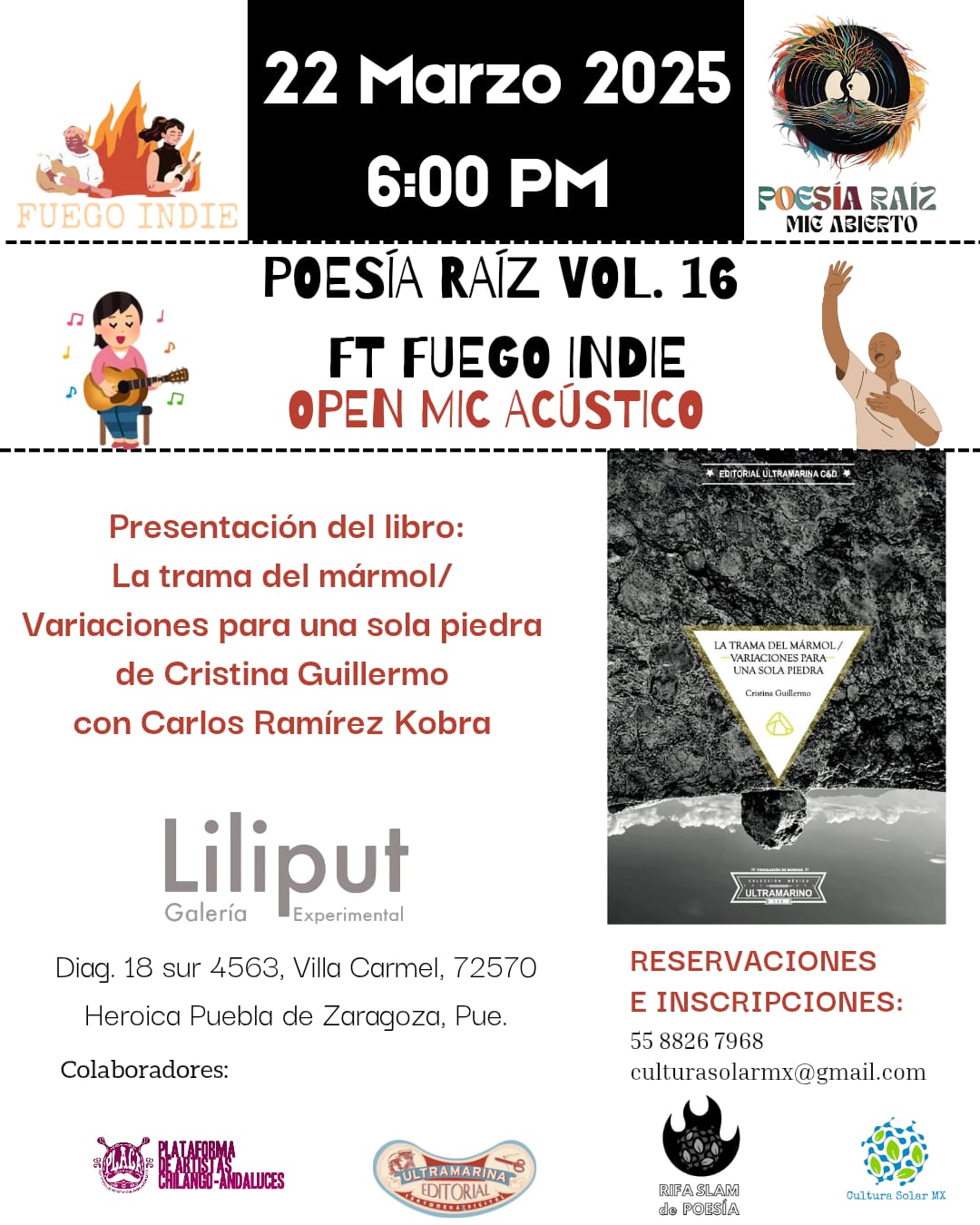 El evento se llevará a cabo en Liliput Galería Experimental, un espacio que ha sido plataforma para la difusión de expresiones artísticas contemporáneas en la ciudad. Gracias a la colaboración de Plataforma PLACA, RIFA Slam de Poesía y Cultura Solar MX, la jornada promete ser un punto de encuentro entre voces que buscan romper fronteras y construir nuevas posibilidades en la poesía y la música independiente.