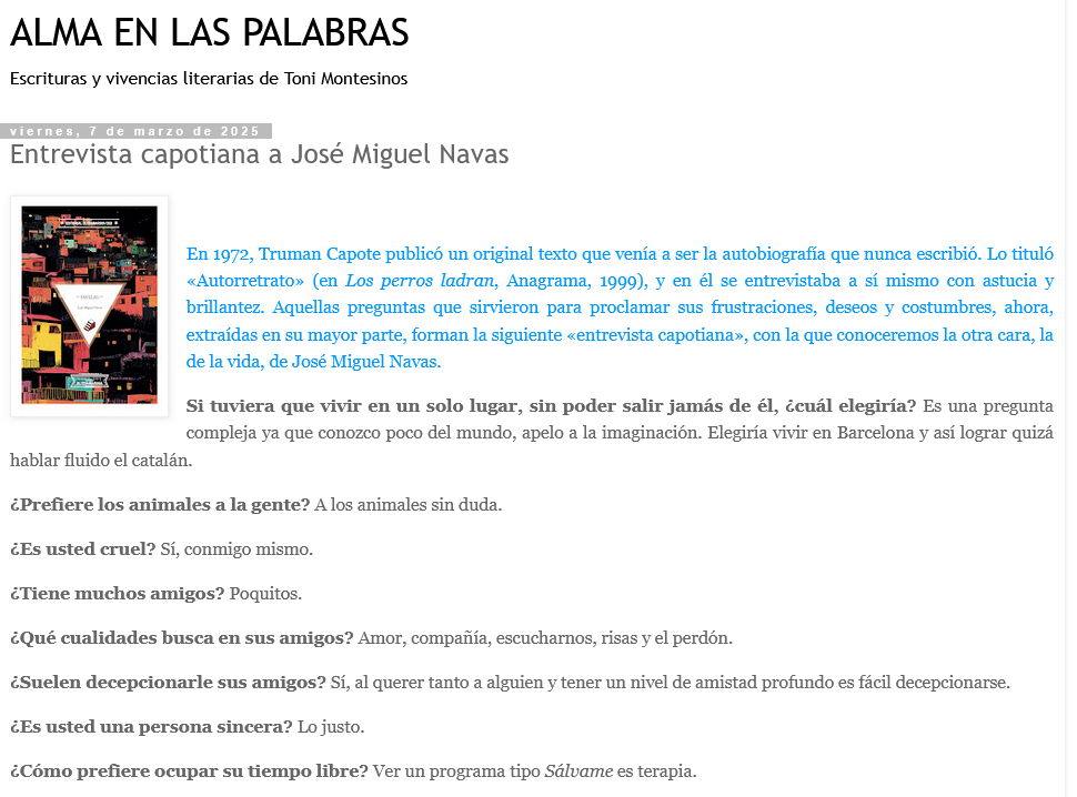 🔗 Lee la entrevista en Alma en las Palabras: https://almaenlaspalabras.blogspot.com/2025/03/entrevista-capotiana-jose-miguel-navas.html?m=1