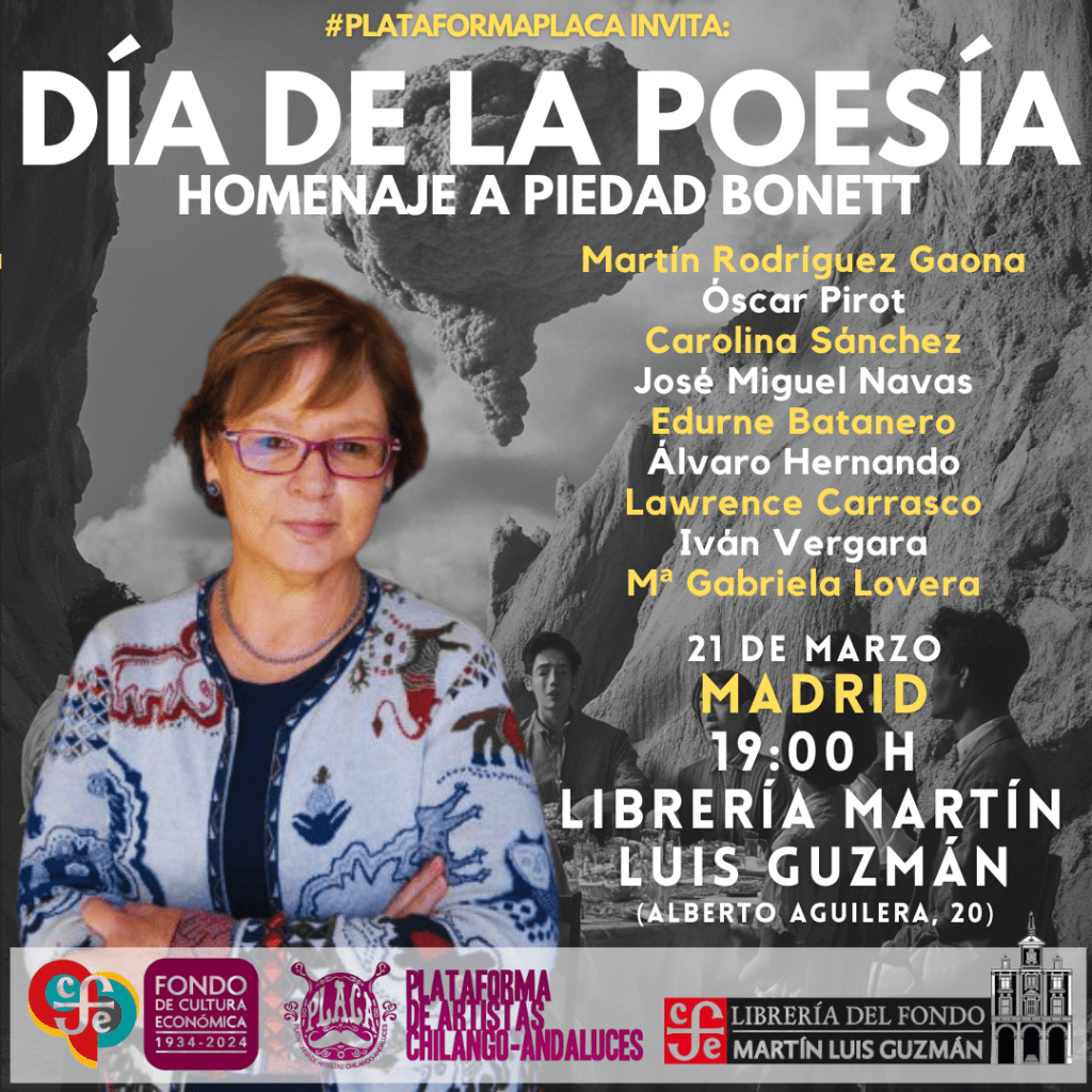 🔹 Una velada de palabra viva y diálogo poético Organizado en colaboración con el Fondo de Cultura Económica (FCE) de España, este evento reunirá a una selección de poetas y creadores en una lectura colectiva que invita a reflexionar sobre el impacto de la poesía en la sociedad contemporánea. Participarán en la velada: ✔ Óscar Pirot ✔ José Miguel Navas ✔ Edurne Batanero ✔ Carolina Sánchez ✔ Álvaro Hernando ✔ Lawrence Carrasco ✔ Iván Vergara ✔ Martín Rodríguez Gaona ✔ Mª Gabriela Lovera