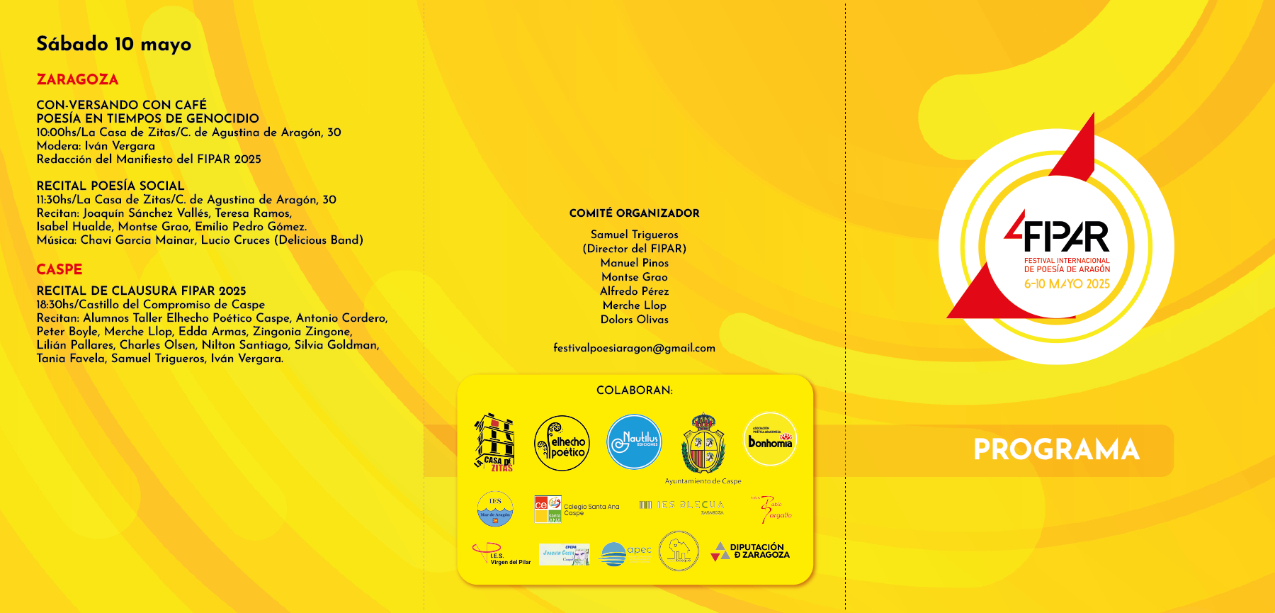 📩 Programa completo disponible en: festivalpoesiaragon@gmail.com