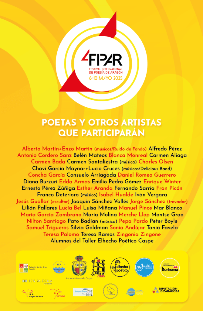 📅 Del 6 al 10 de mayo | 📍 Zaragoza y Caspe | ✍️ Festival Internacional de Poesía de Aragón (FIPAR)