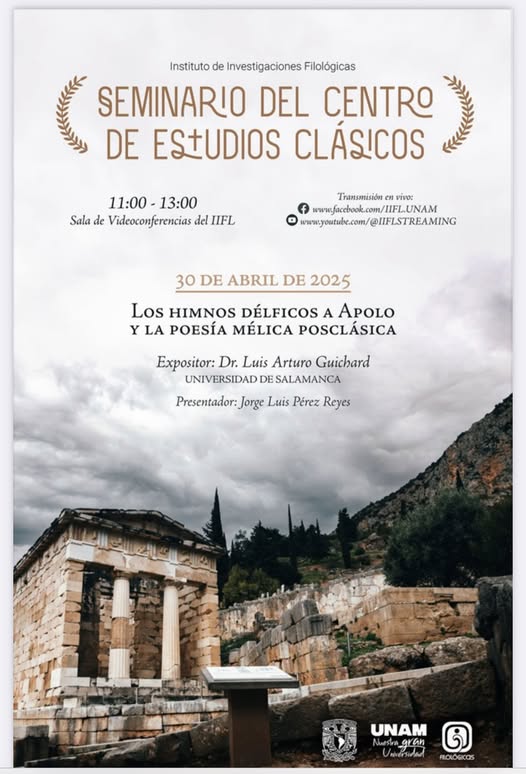 El próximo miércoles 30 de abril, el poeta, traductor y estudioso Luis Arturo Guichard ofrecerá una conferencia magistral como parte del Seminario del Centro de Estudios Clásicos del Instituto de Investigaciones Filológicas de la UNAM.