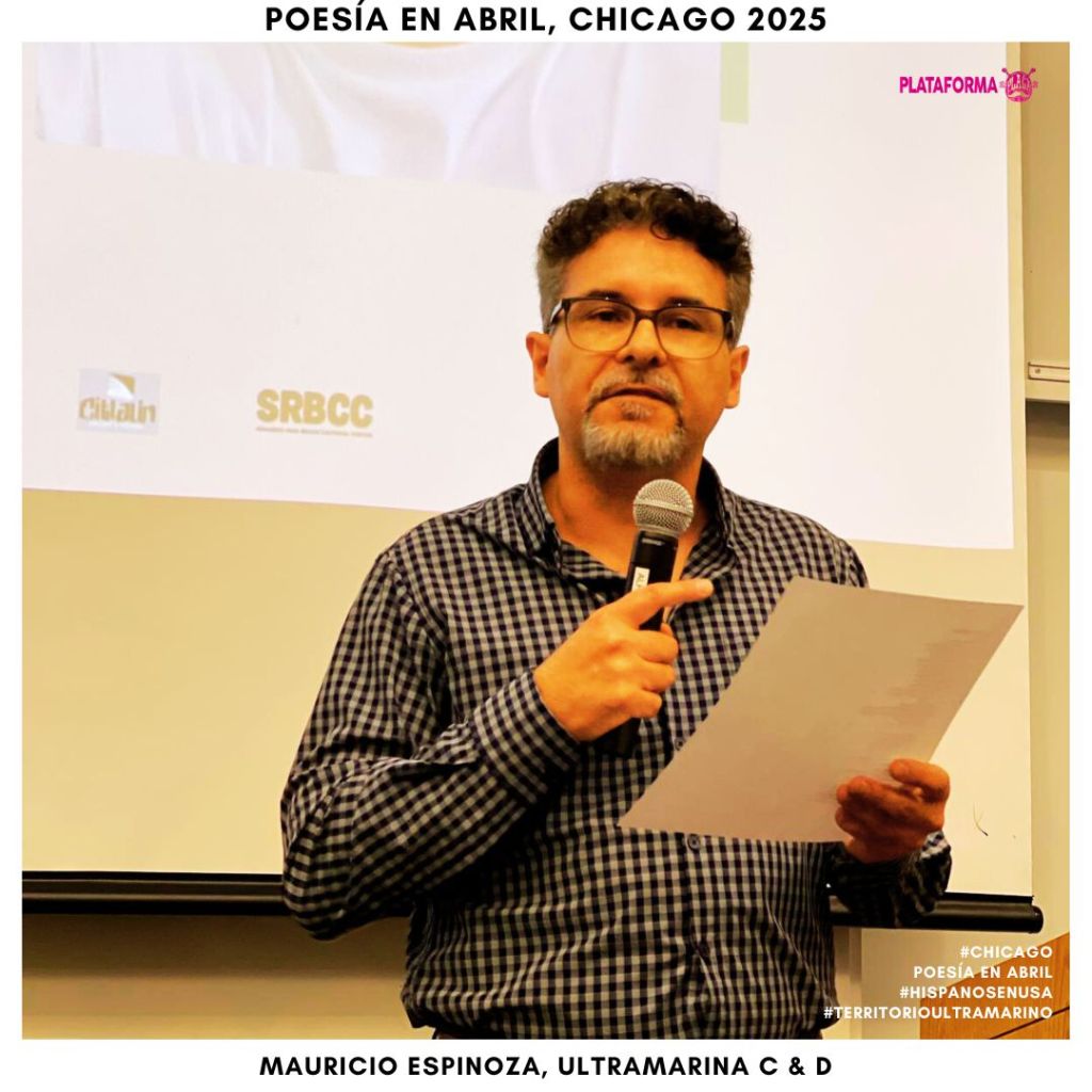 Desde la Plataforma PLACA y Editorial Ultramarina C&D, celebramos especialmente la participación de nuestrxs autorxs ultramarinos, quienes llevaron la voz migrante, bilingüe y múltiple a los escenarios del festival. Entre ellxs, destacó Mauricio Espinoza, editor de En el corazón de todo / In the Heart of It All, quien presentó la antología que reúne poesía hispana radicada en Ohio.