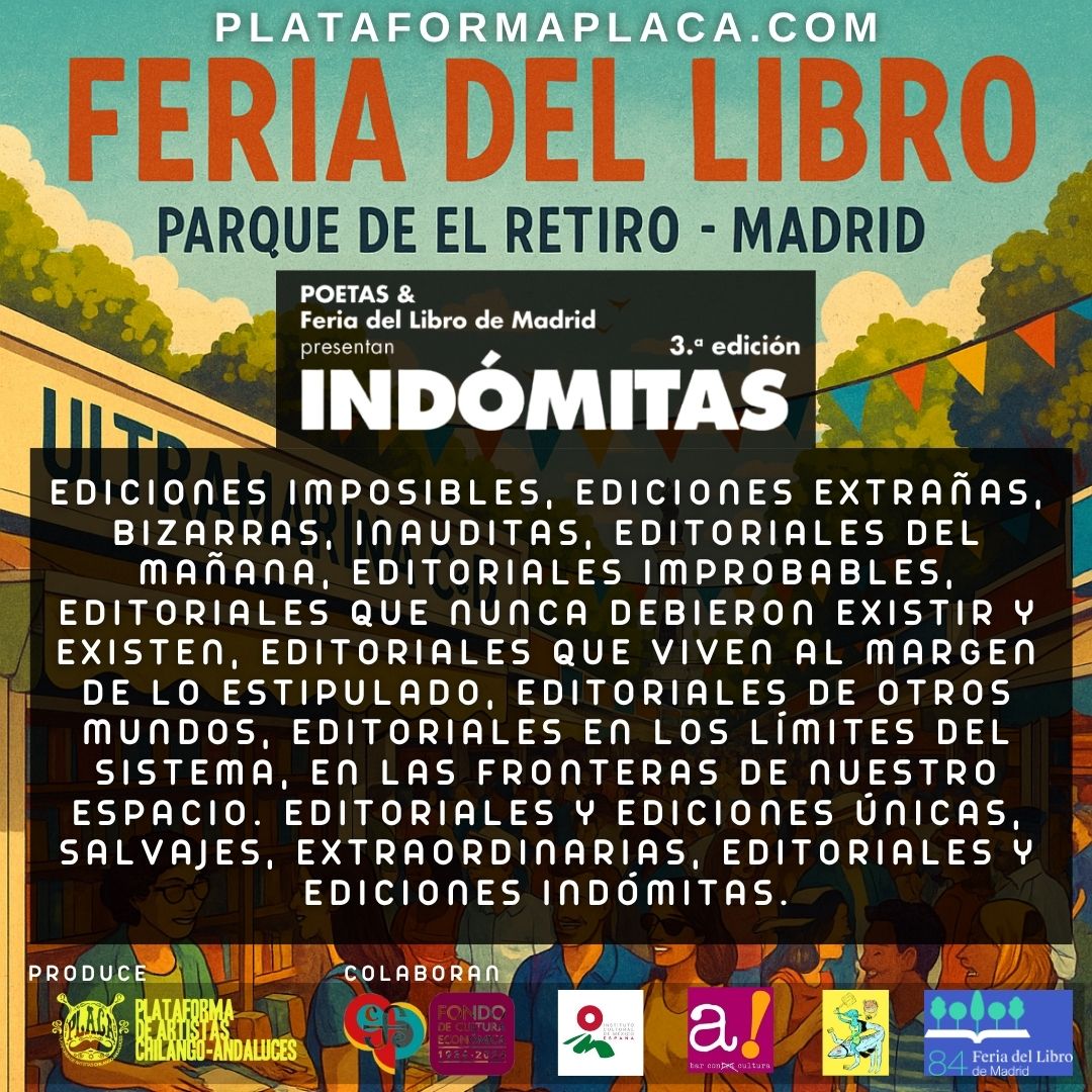Durante tres semanas, el Parque del Retiro se transforma en un océano de letras. Pero en esa marea editorial hay islas que brillan distinto. Una de ellas se llama PLACA. Y este año, cruzando océanos y muros invisibles, traemos una constelación completa de poetas, editorxs, diseñadorxs, cartoneros, performers, músicos y agitadorxs culturales. Venimos desde Sevilla, Oaxaca, Nueva York, Francia, Santiago de Chile y Ciudad de México. Venimos con libros, con cuerpos, con canciones, con ganas.