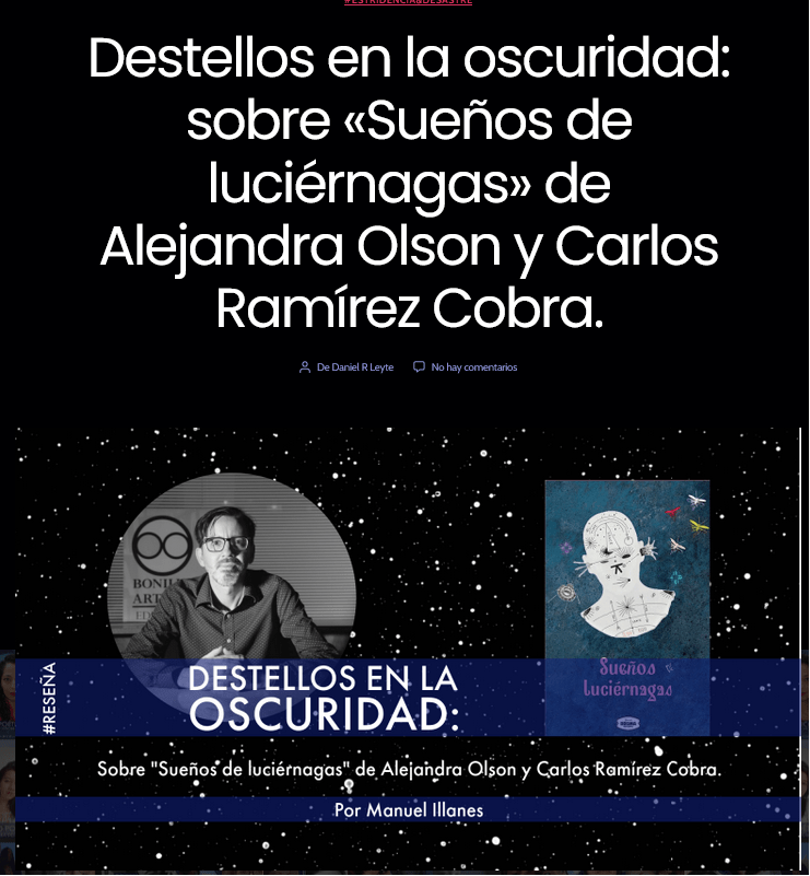 Lee la reseña al completo – https://aleteopoetico.wordpress.com/2025/07/02/destellos-en-la-oscuridad-sobre-suenos-de-luciernagas-de-alejandra-olson-y-carlos-ramirez-cobra/