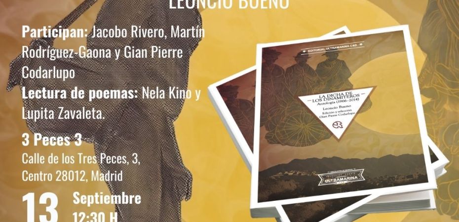 El próximo 13 de septiembre a las 12:30 h, en el espacio cultural 3 Peces 3 (Calle de los Tres Peces 3, Madrid), se presentará la antología La dicha de los dinamiteros (1966–2014) de Leoncio Bueno, poeta peruano inédito hasta ahora en España.